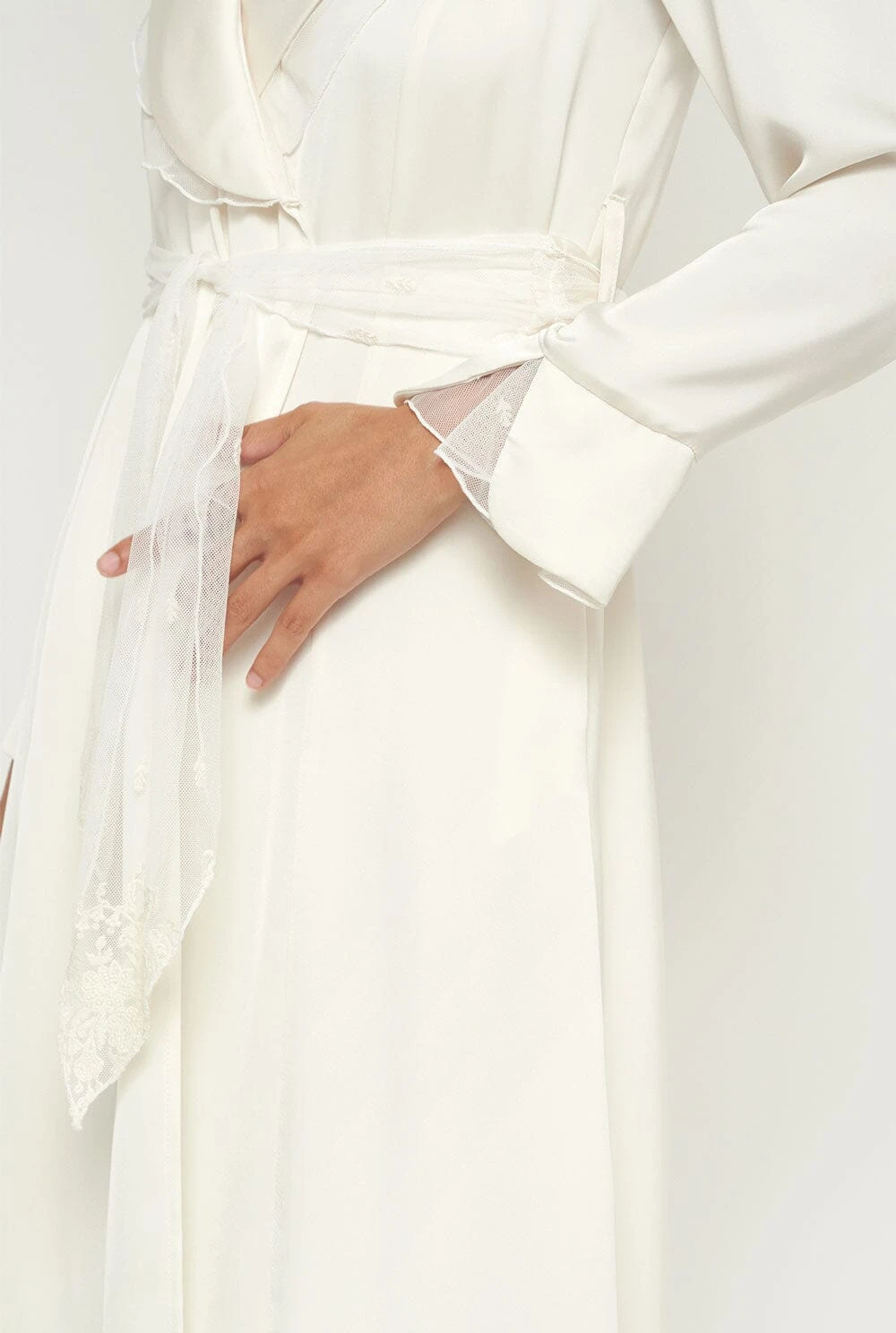 Long sleeves with slit at the cuff and embroidered chiffon embroidered chiffon flounce