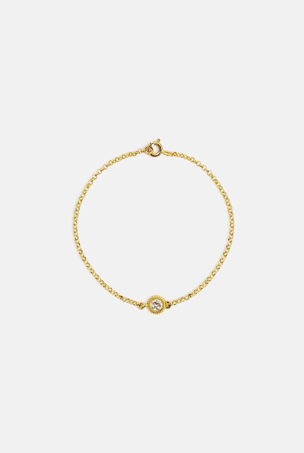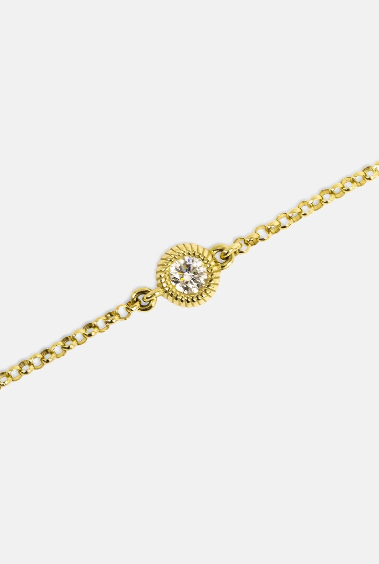 Bracelet made in 18K gold with one brilliant cut diamond. Designed by Leandra.