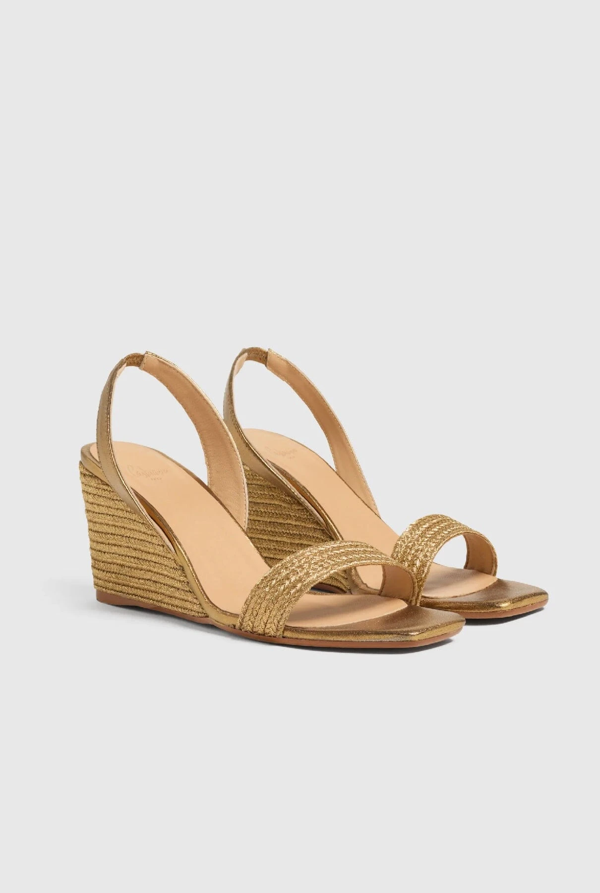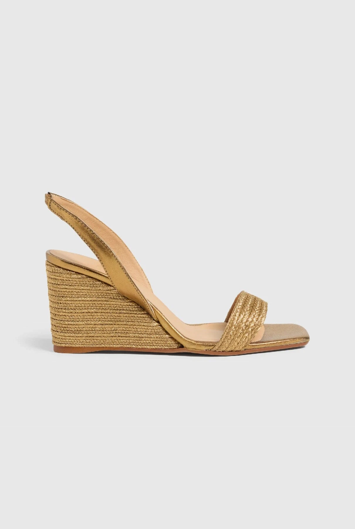 LA SANDALIA BARBY TRENZADA EN ACABADO METALIZADO ELEVARÁ CUALQUIER LOOK. CONFECCIONADA ARTESANALMENTE EN ESPAÑA, LAS ALPARGATAS BARBY SON UNA APUESTA SEGURA. PRESENTAN PUNTERA ABIERTA, ABERTURA EN LA PARTE POSTERIOR DEL TALÓN, CUÑA DE 8CM Y SUELA DE CUEROLITE. CARACTERÍSTICAS COLOR: ORO VIEJO COMPOSICIÓN INTERIOR: 100% CUERO OVINO COMPOSICIÓN EXTERIOR: 100% ALGODÓN MATERIAL SUELA: CUEROLITE ALTURA TOTAL: 8CM PLATAFORMA/ALTURA: 1CM ALTURA CUÑA/TACÓN: 7CM SKU: 023066-3006