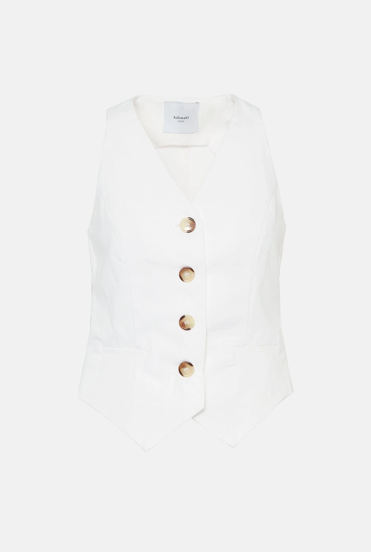 White cotton canvas waistcoat. Designed by Kolonaki.