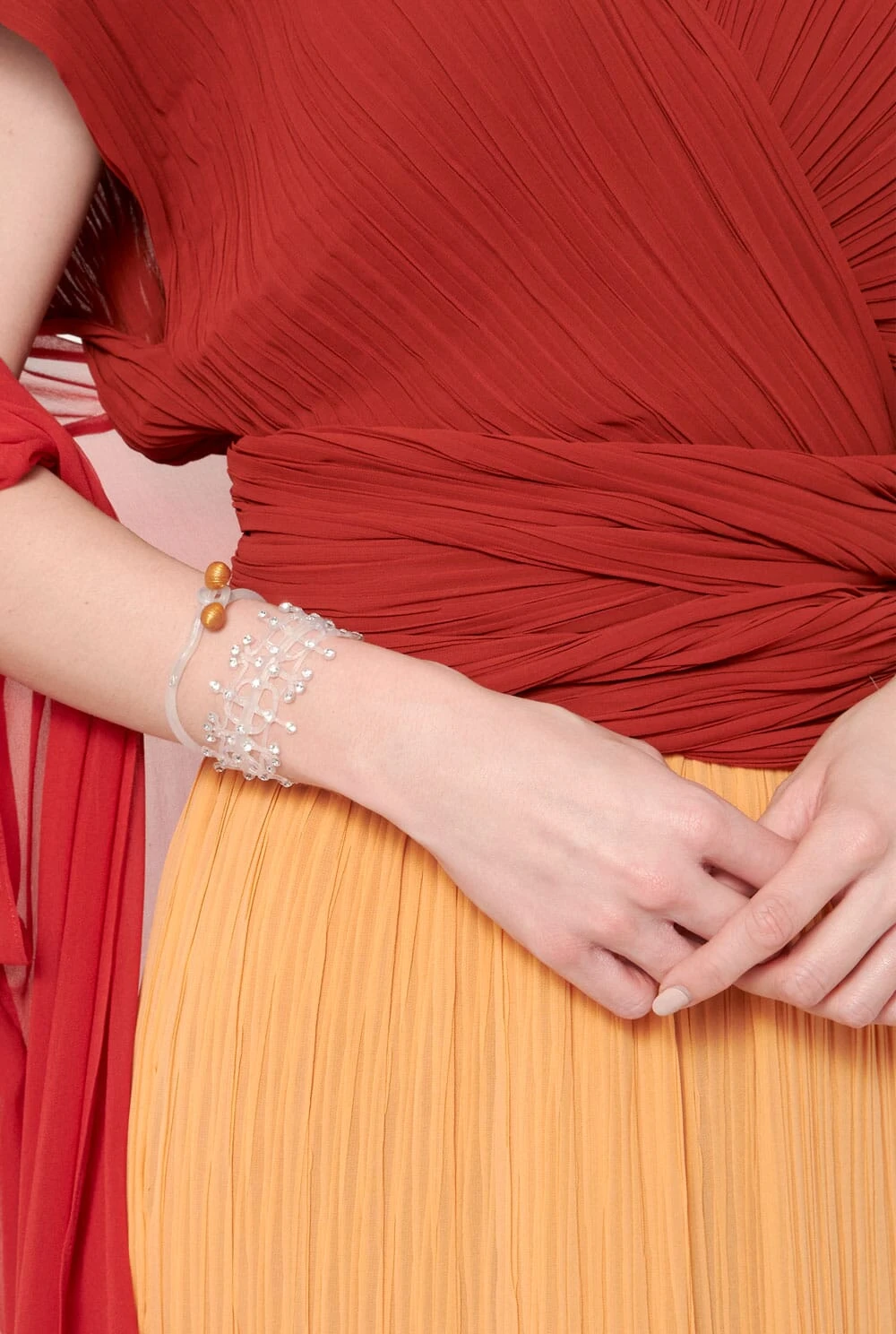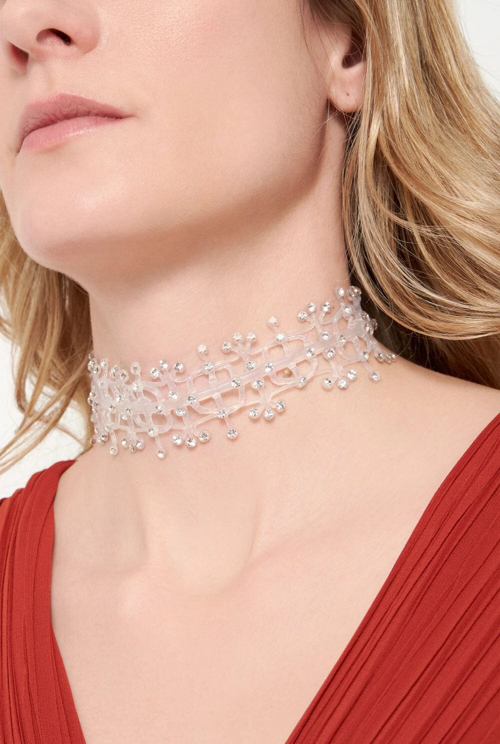 Very versatile piece. Can be combined in different positions: choker, bracelet, hair accesory.