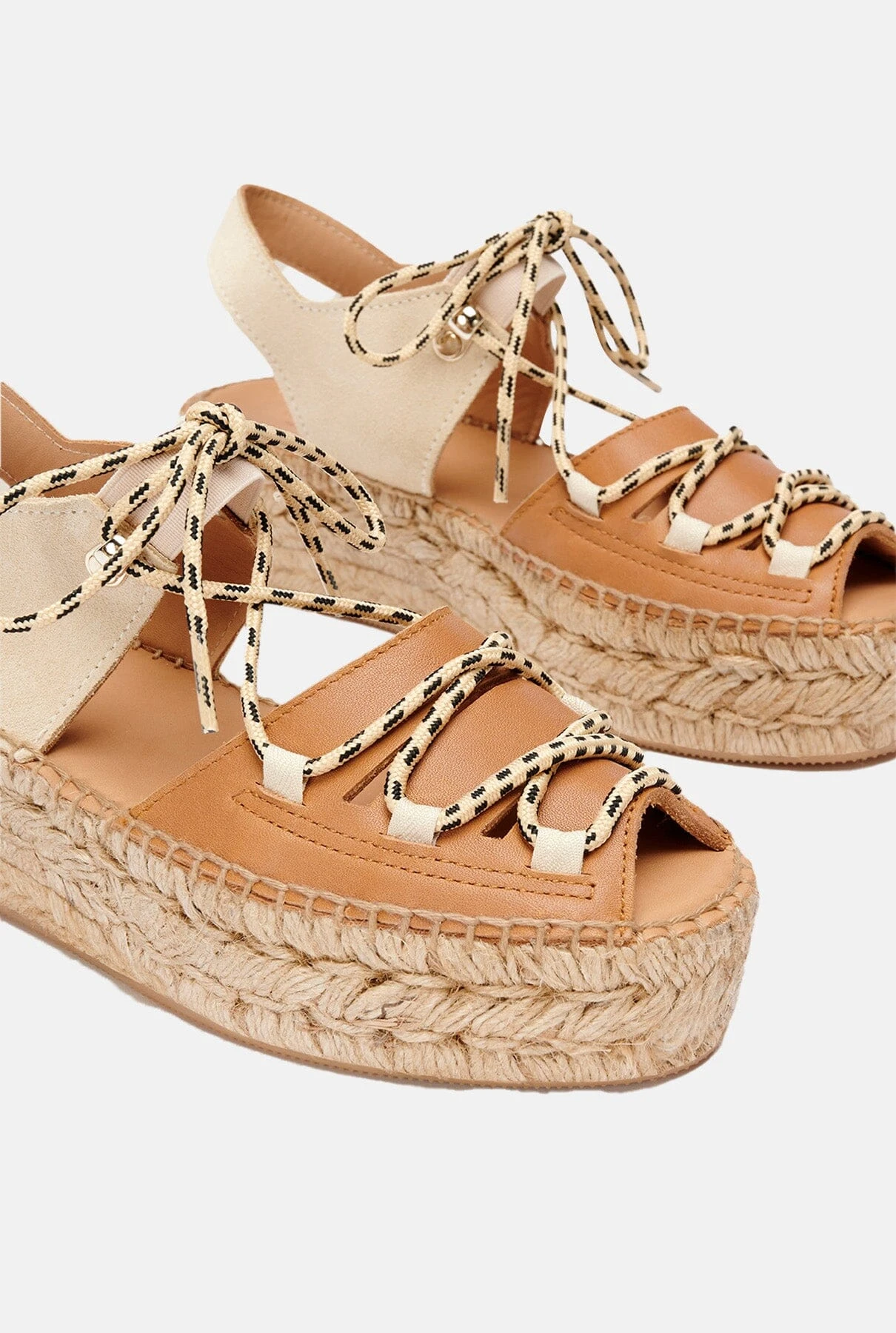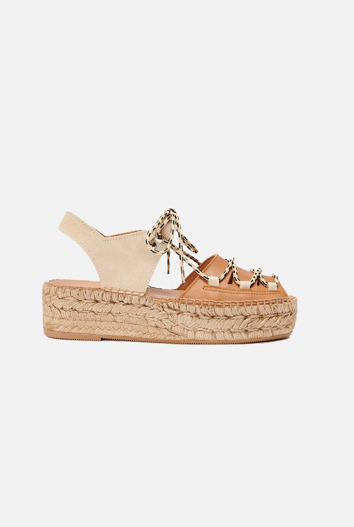 The sole features a jute double braid, a small wedge for improved comfort, and a non-slip rubber outsole. Total height of 5 cm.