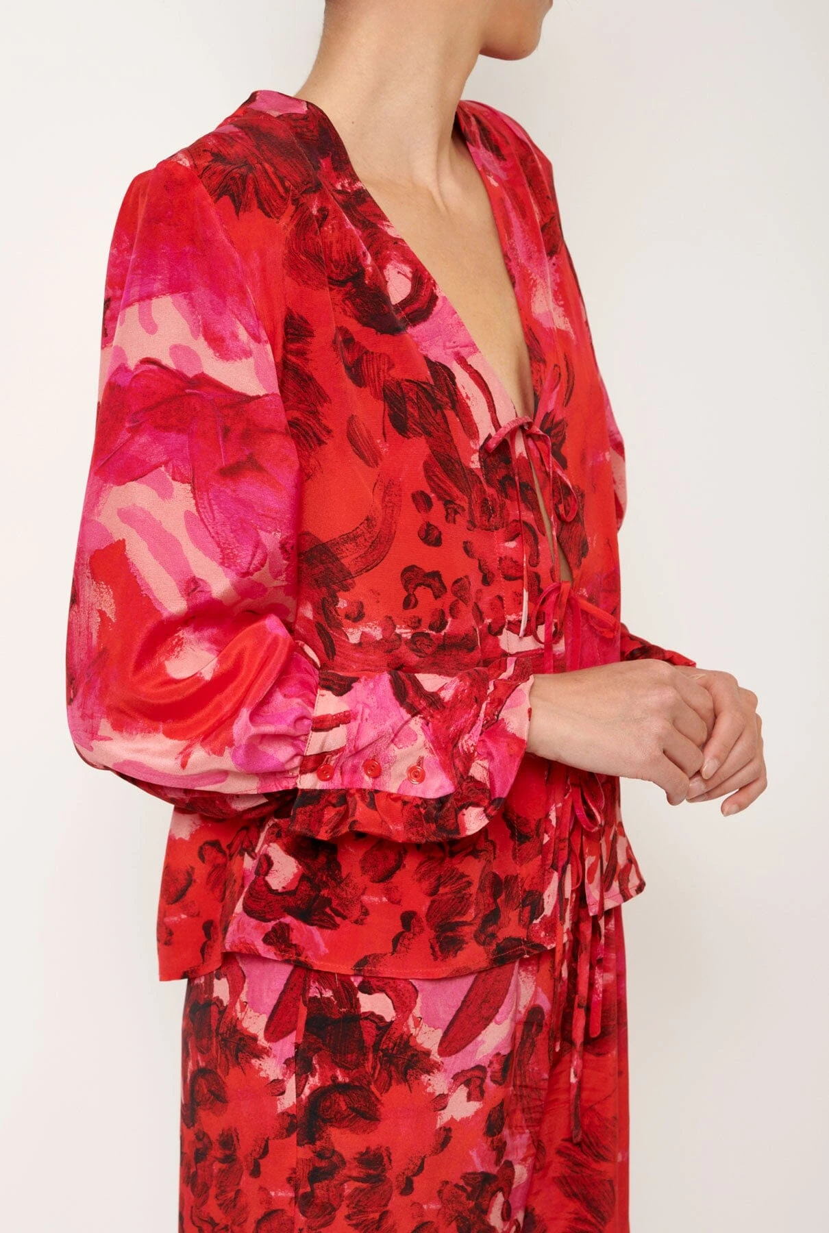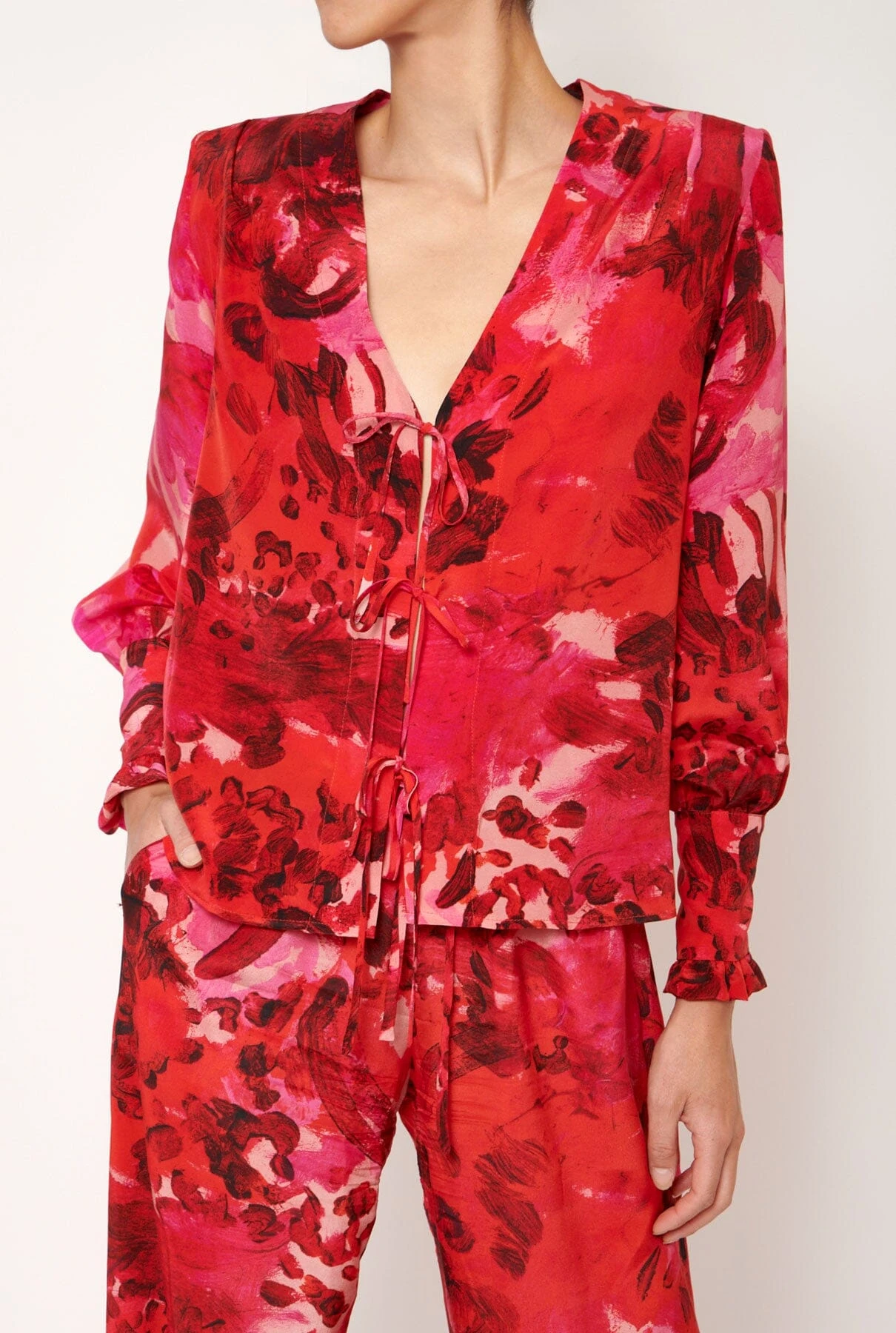 The Coral Reef V Blouse is an exceptional garment that combines elegance and sophistication in every detail. This blouse features a V-neck and an open front that adds a special touch to your look.