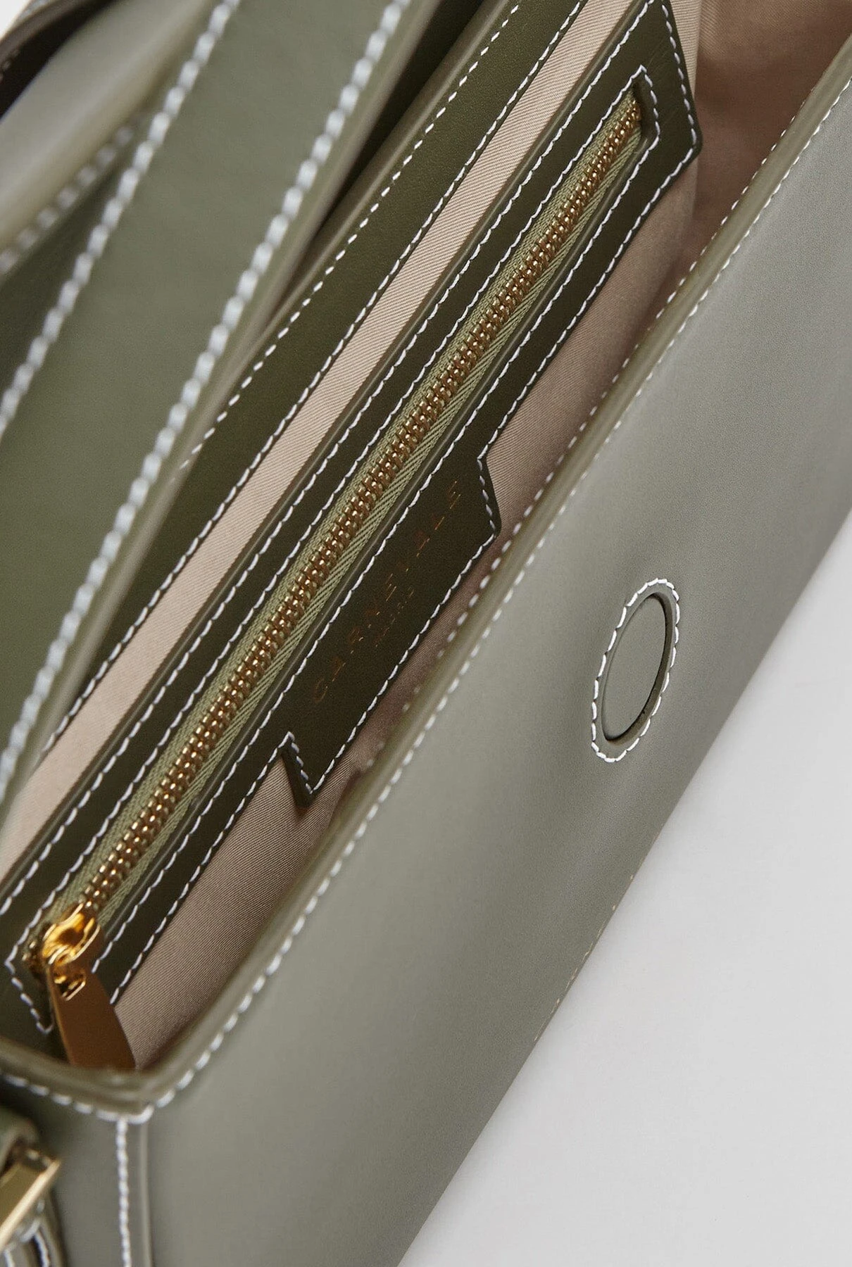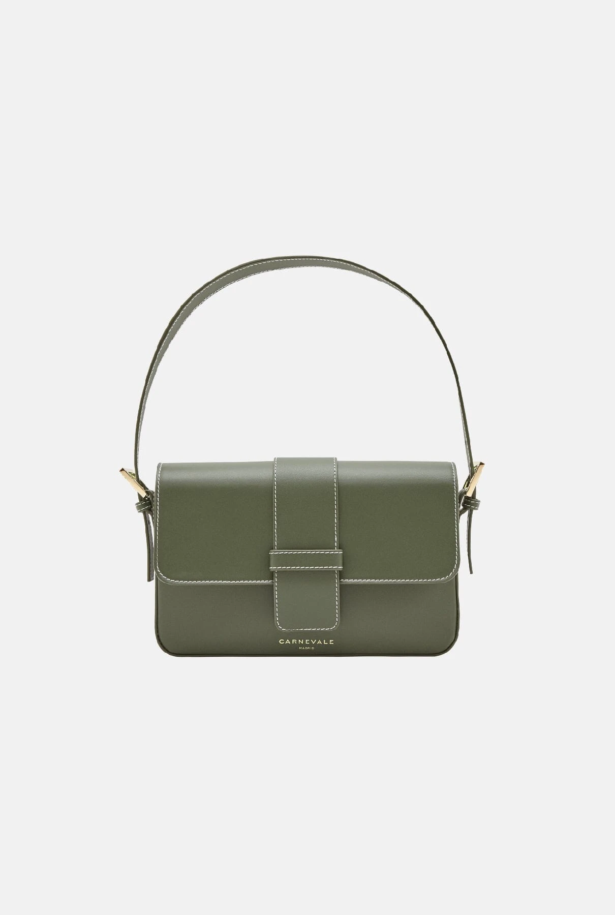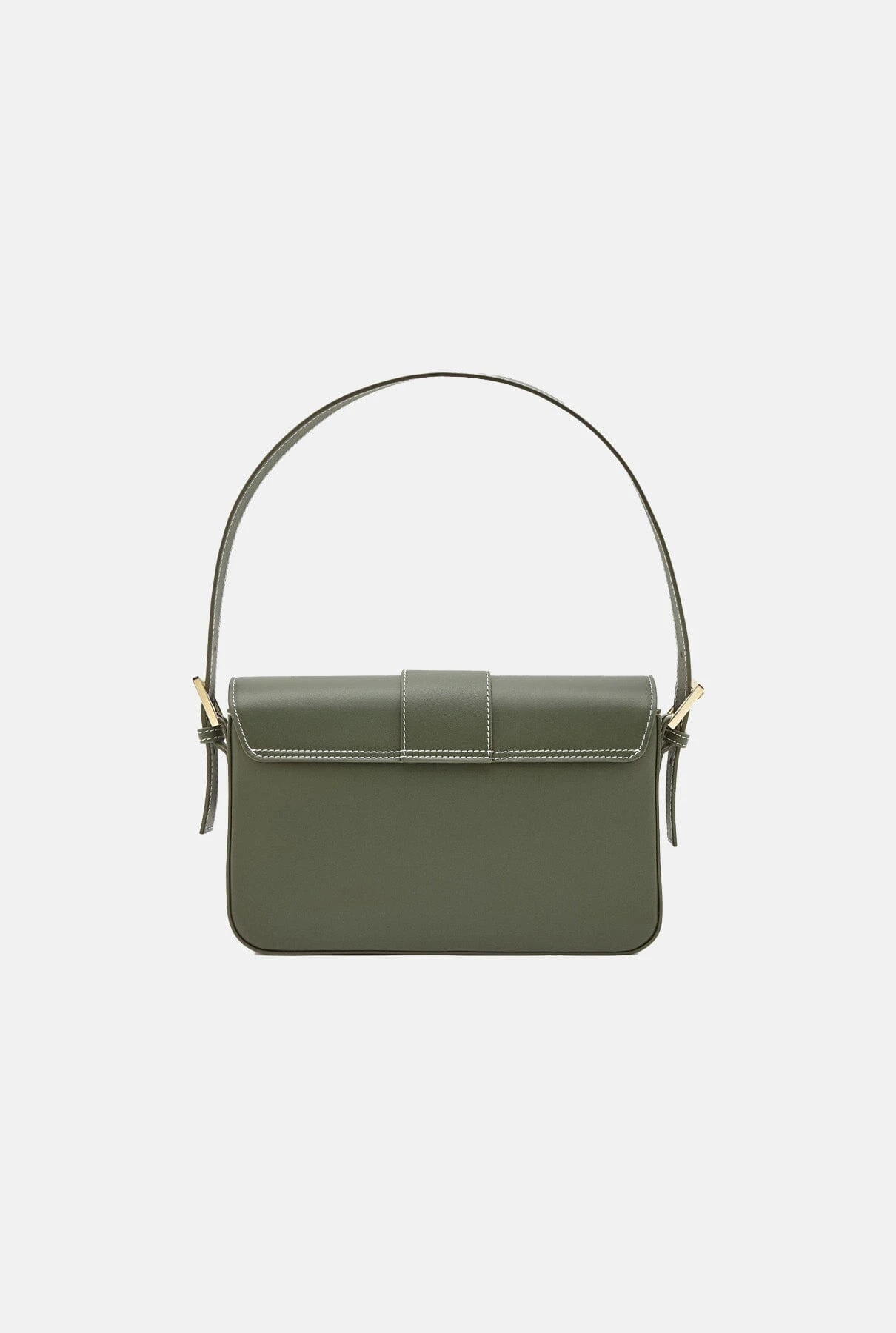 Baguette Bag in army green with minimalist style and smooth leather design. Includes two adjustable straps, a short one to carry it as a shoulder bag and a long one to carry it cross-body. Semi-rigid construction. Features an interior zipped pocket. The purchase includes an organic cotton bag.