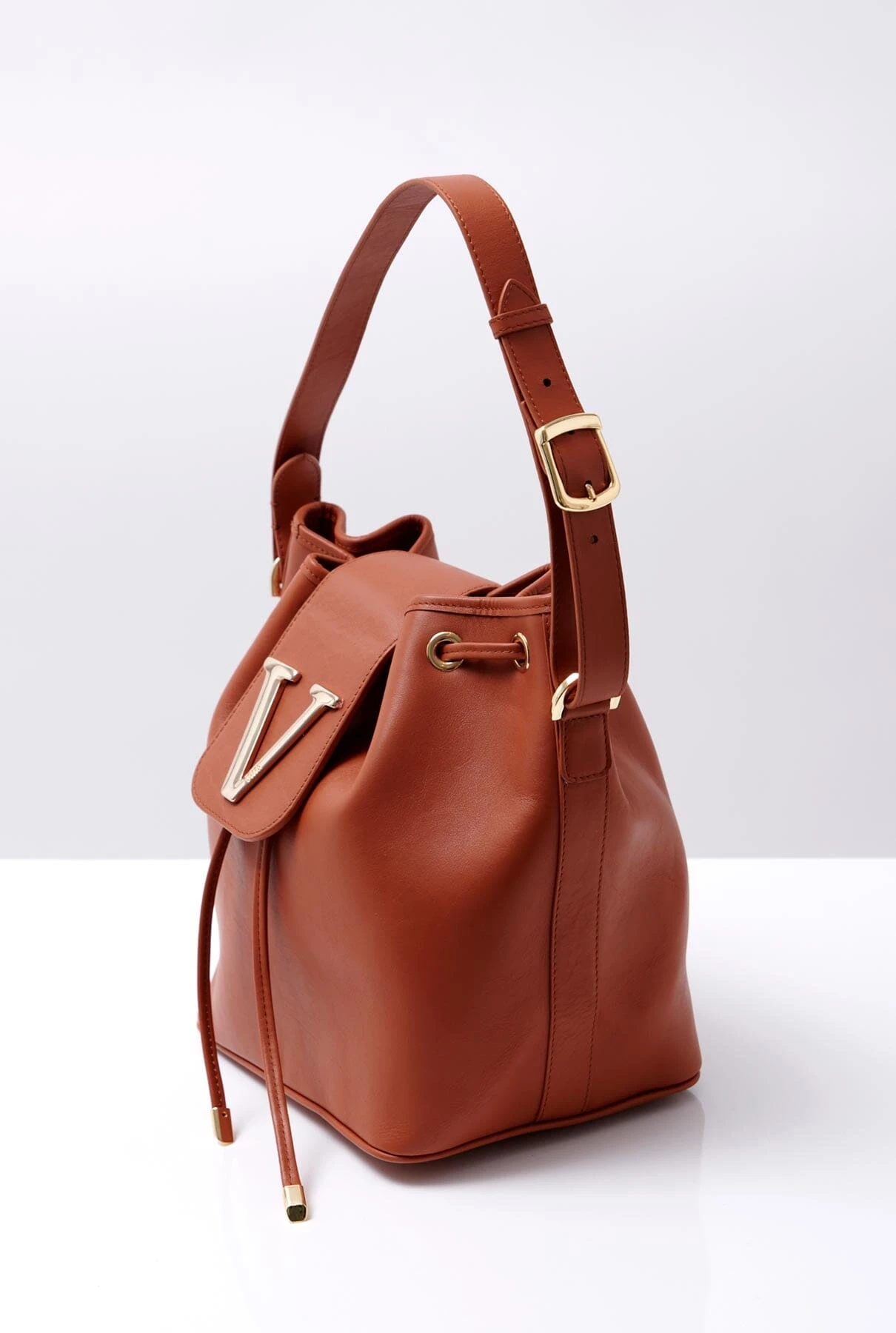 The Dear Bag is 100% soft textured cowhide leather with an adjustable leather handle and hand-polished gold-tone metal details. The interior lining is 100% cotton with an internal pocket for added convenience. The brand’s signature V is embossed on the base. The bag is available in four different colours: white, black, cream and toasted camel.