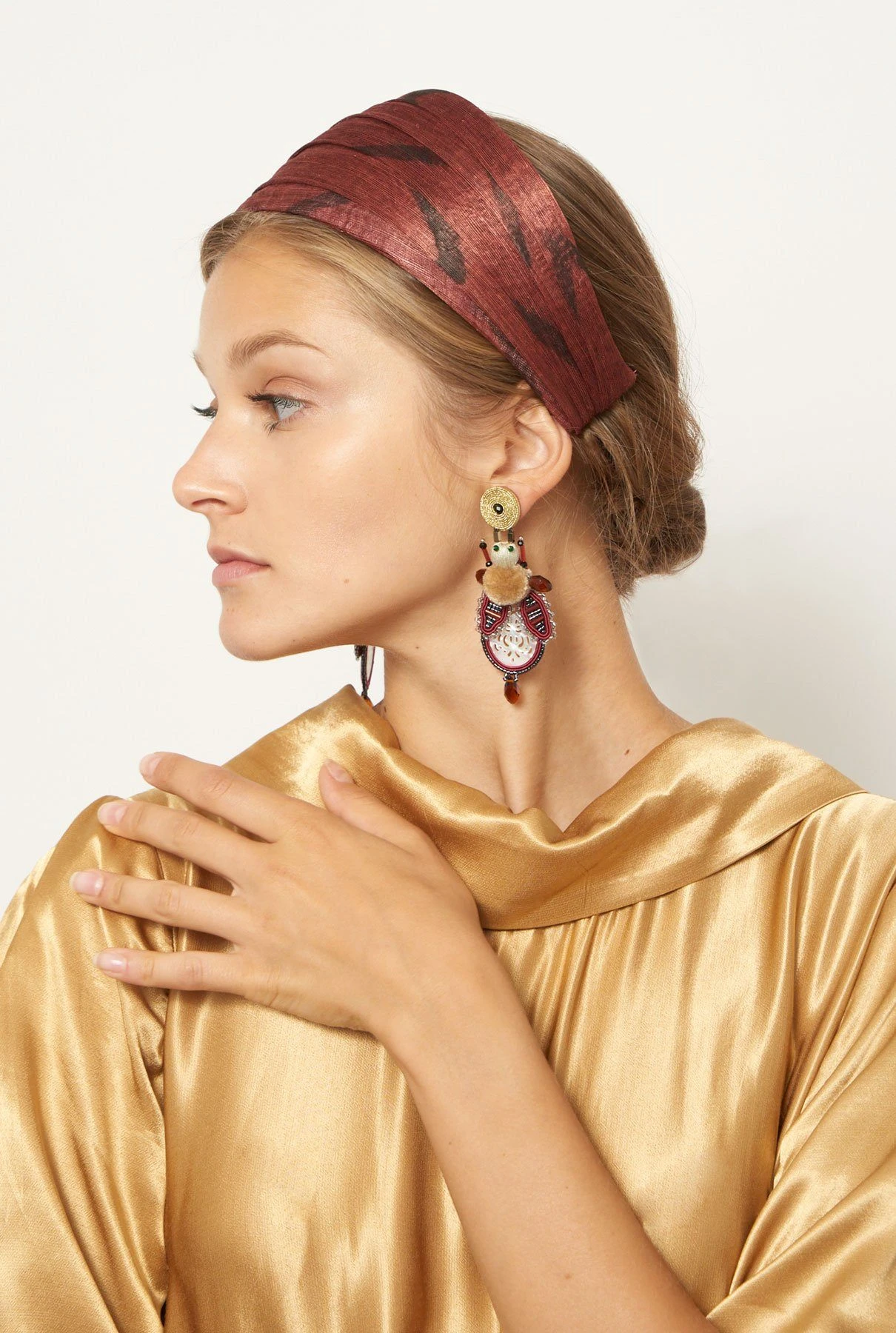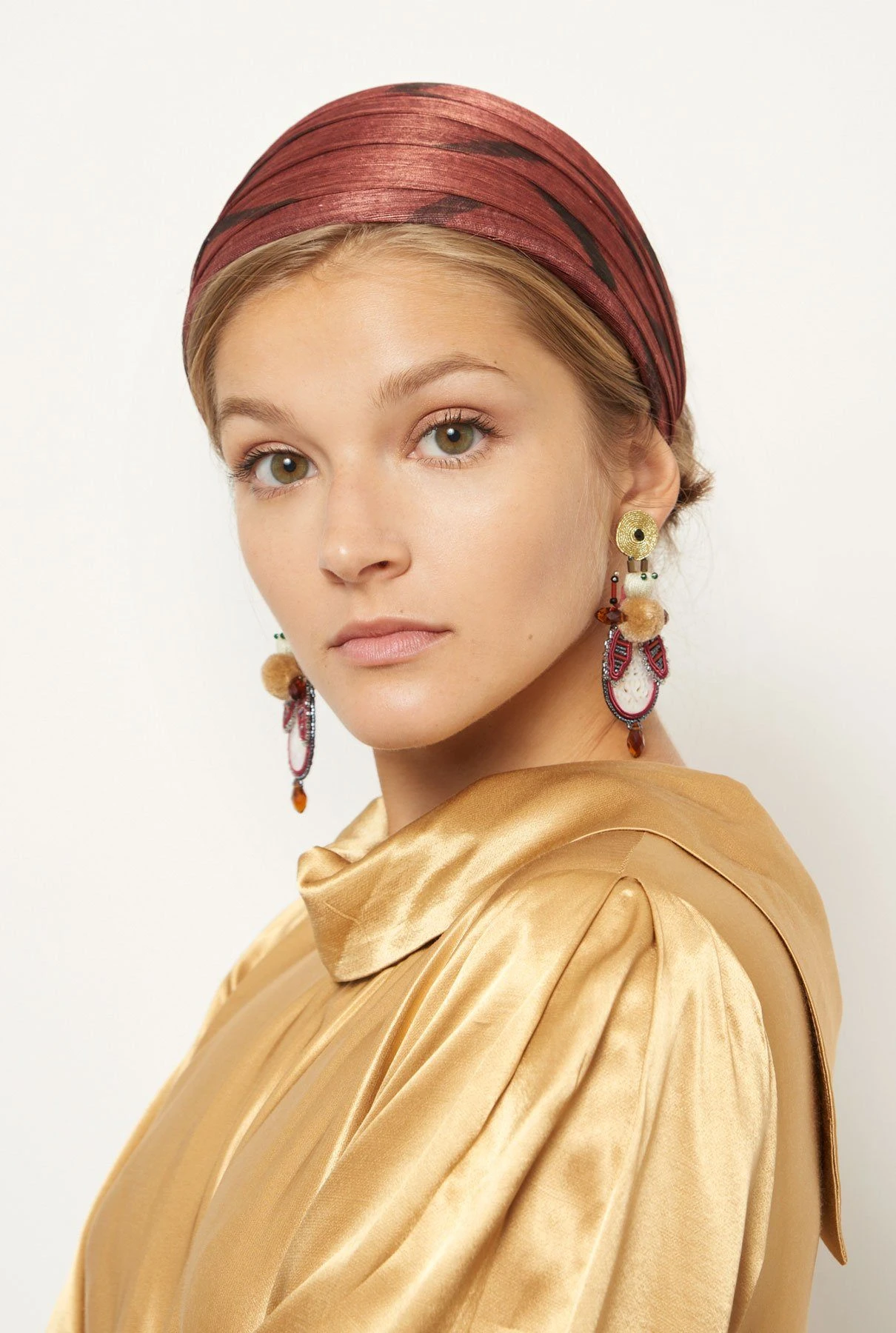 Sinamay painted silk headband. Designed by Nana Golmar