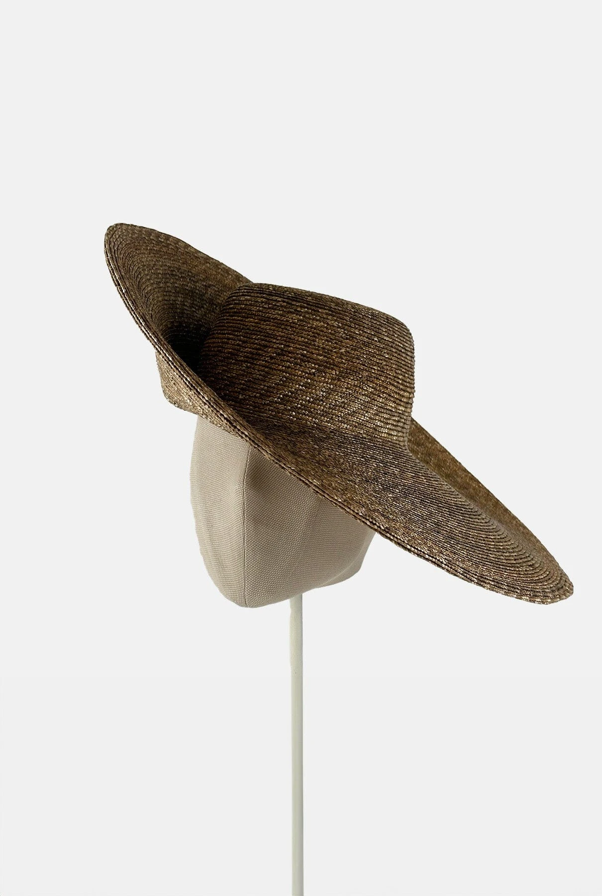Pamela made of 4/5 mm braided wheat straw, premium quality, sewn and shaped following artisan millinery techniques. Designed by Nana Golmar.