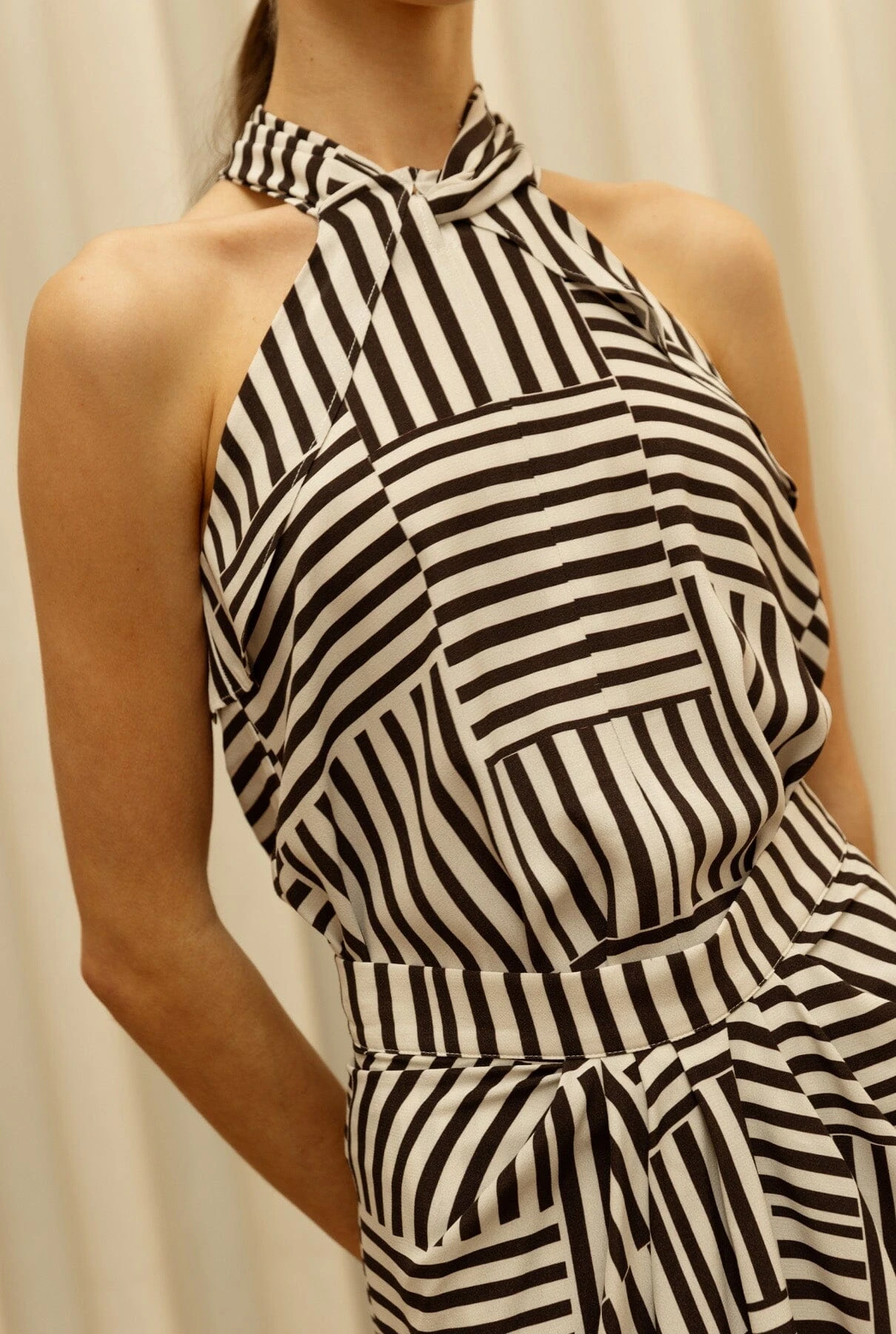 Midi skirt draped at the centre front where it crosses over, leaving a slit that gives a glimpse of the legs. It is cut on the bias, which favours the fit and the adaptation to the body. It closes with a zip at the centre back.