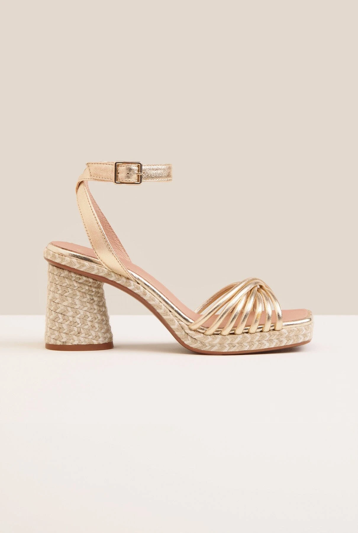 Gaimo women’s espadrille in leather in super-soft napa leather. Fusca style with interlaced multi-strap upper detail and open heel featuring an ankle strap with side buckle closure. Designed and traditionally crafted in Spain, this is a comfortable and sophisticated design with outstanding versatility ready to combine with your more casual looks or for a special occasion as an event guest or a bride-to-be.