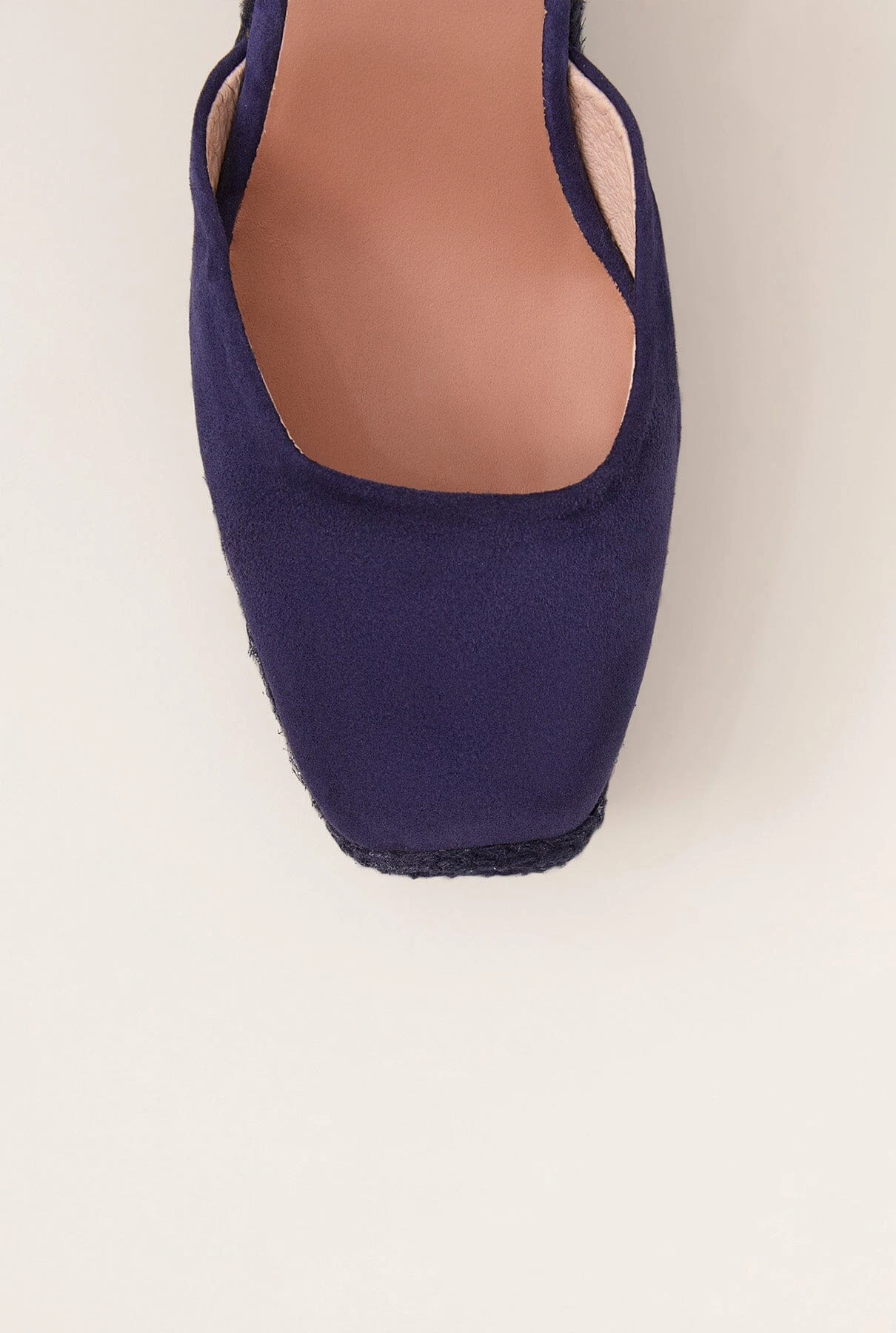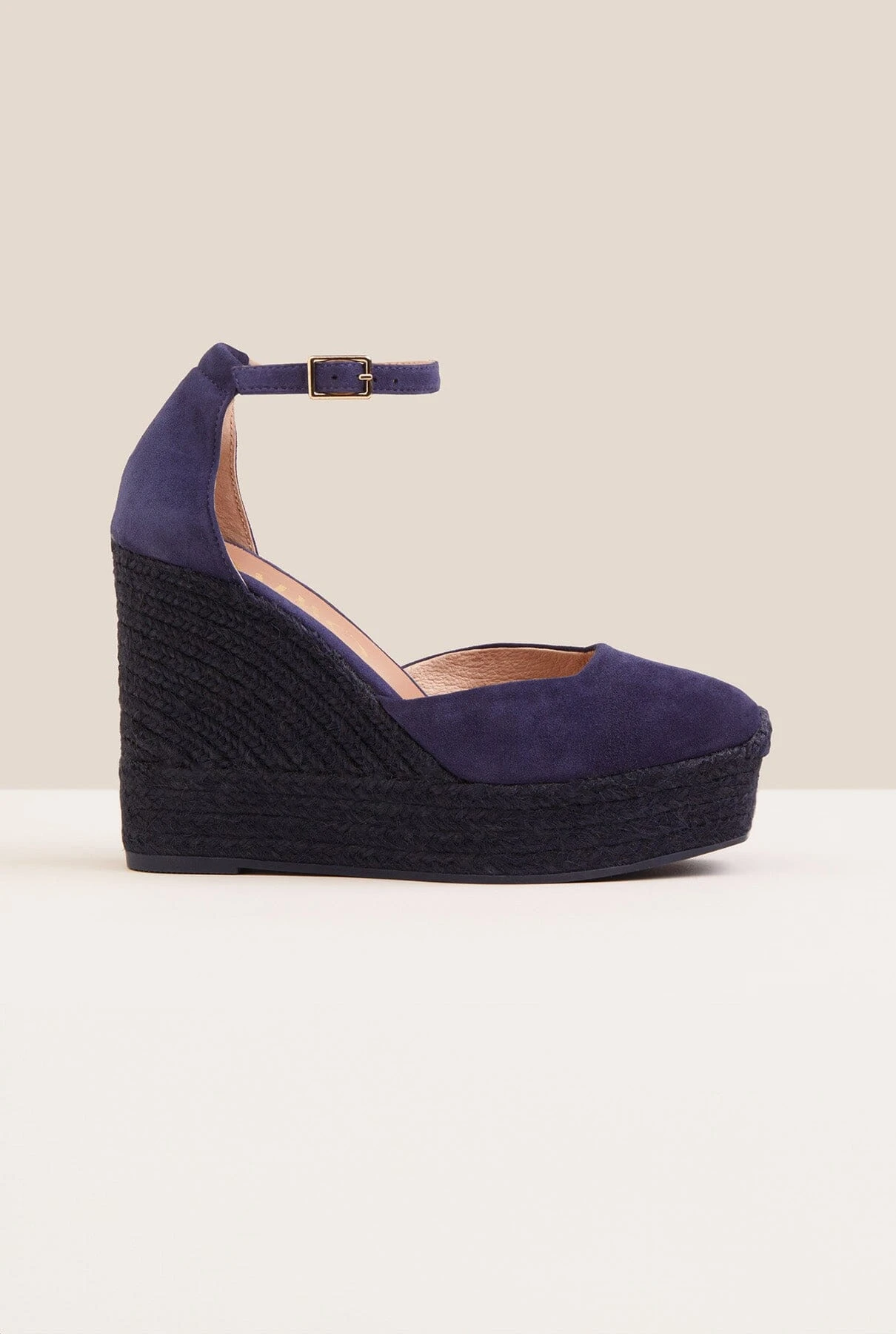 Gaimo women’s espadrille in suede. Sasia with square throat, closed upper and heel with ankle strap and buckle. Designed and handcrafted in Spain, a comfortable and sophisticated design with outstanding versatility ready to combine with your more casual looks or for a special occasion as an event guest.