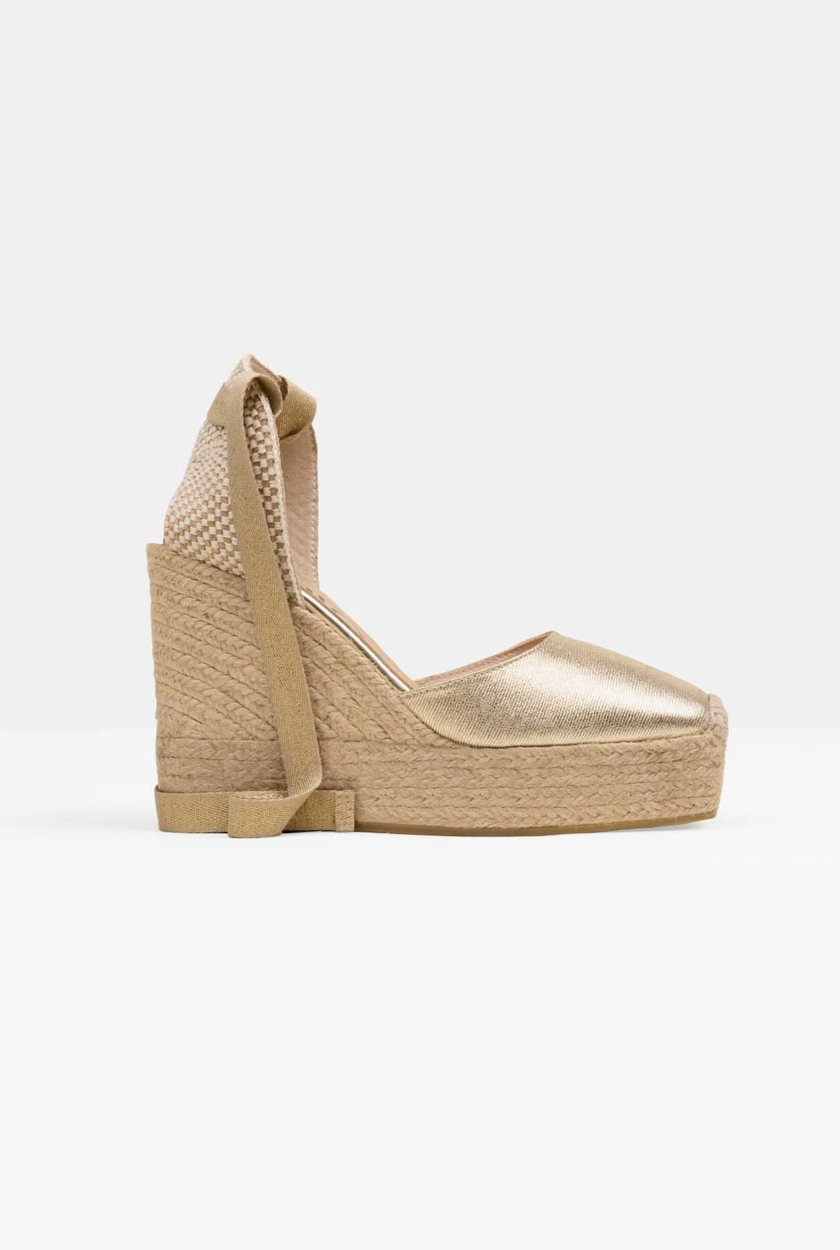 Gaimo women’s espadrille in leather. Tedie style with square toe closed upper and heel with ribbons to tie at the ankle. Leather cushioned insole and lining with 12.5cm organic jute wedge and 4cm platform. Designed and traditionally crafted in Spain, they’re the perfect choice for gaining a little height and adding a striking finishing touch to your look without compromising on comfort.