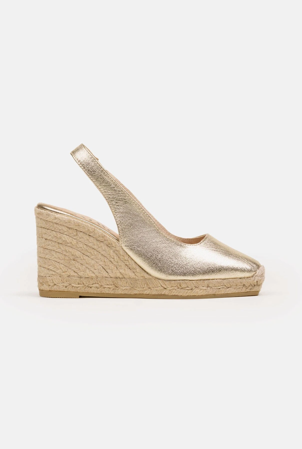 Gaimo women’s espadrille in leather. Teyma slingback pump with stretch and square toe. Leather cushioned insole and lining with 8.5cm organic jute wedge and 2cm platform. Designed and produced using traditional methods in Spain, this is a timeless and very comfortable design that’s ideal to combine with any of your summer looks.