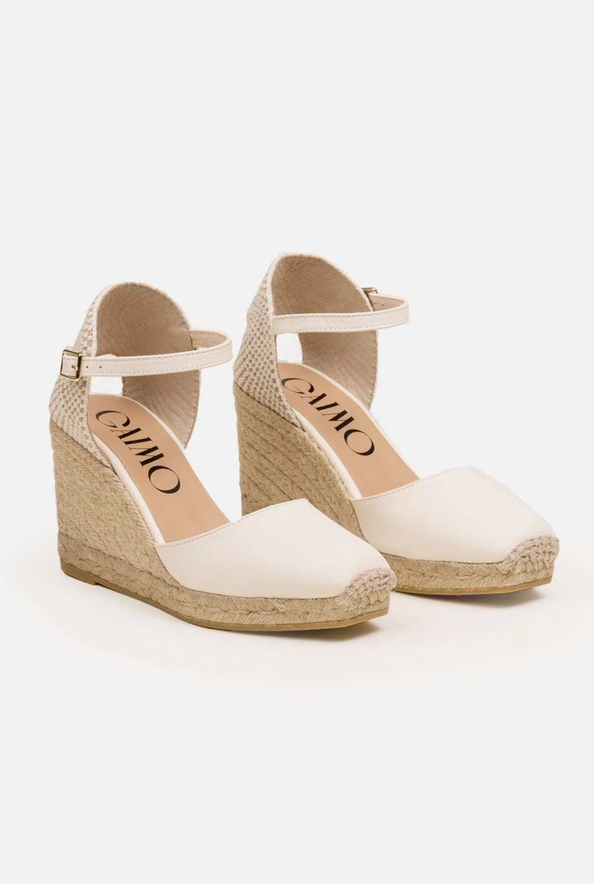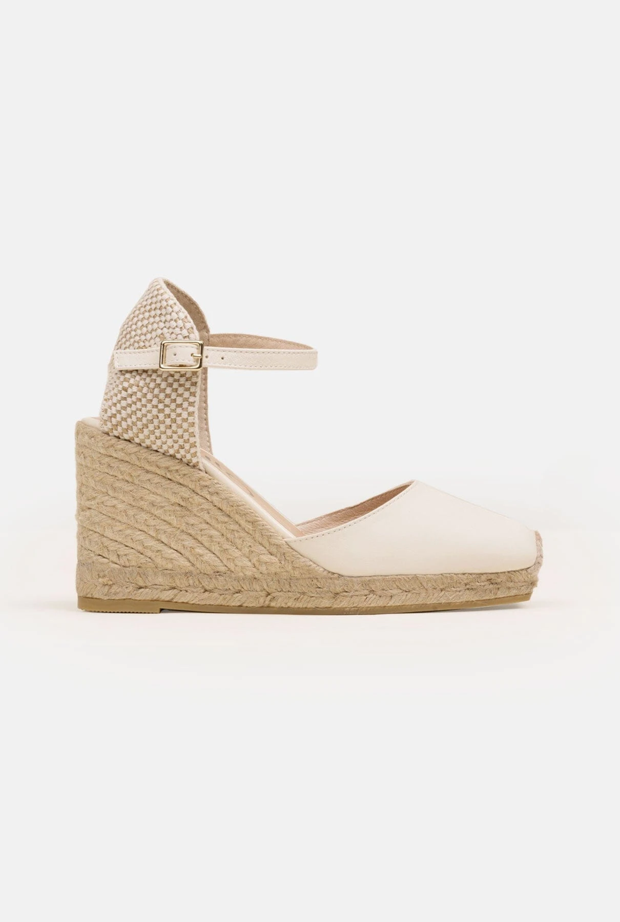 Gaimo women’s espadrille in leather. Yosie style with square toe closed upper and heel with buckle fastening at the ankle. Leather cushioned insole and lining with 8.5cm organic jute wedge and 2cm platform. Designed and handcrafted in Spain, our iconic timeless piece is a very comfortable wardrobe staple that’s ideal for any occasion.