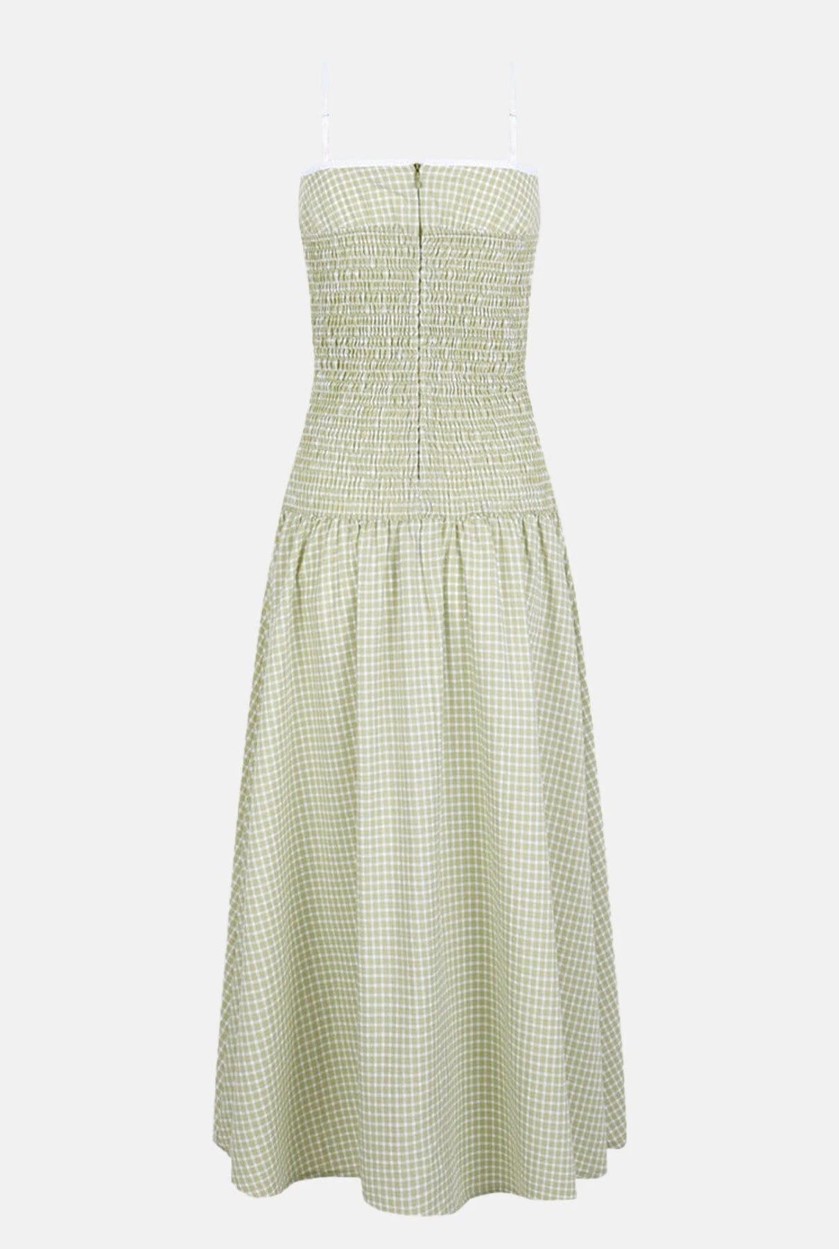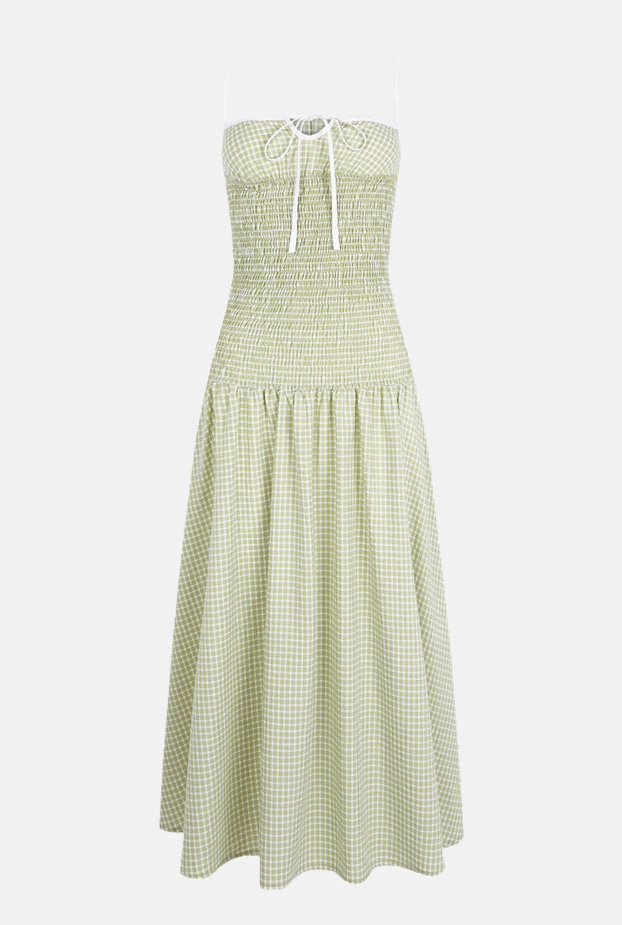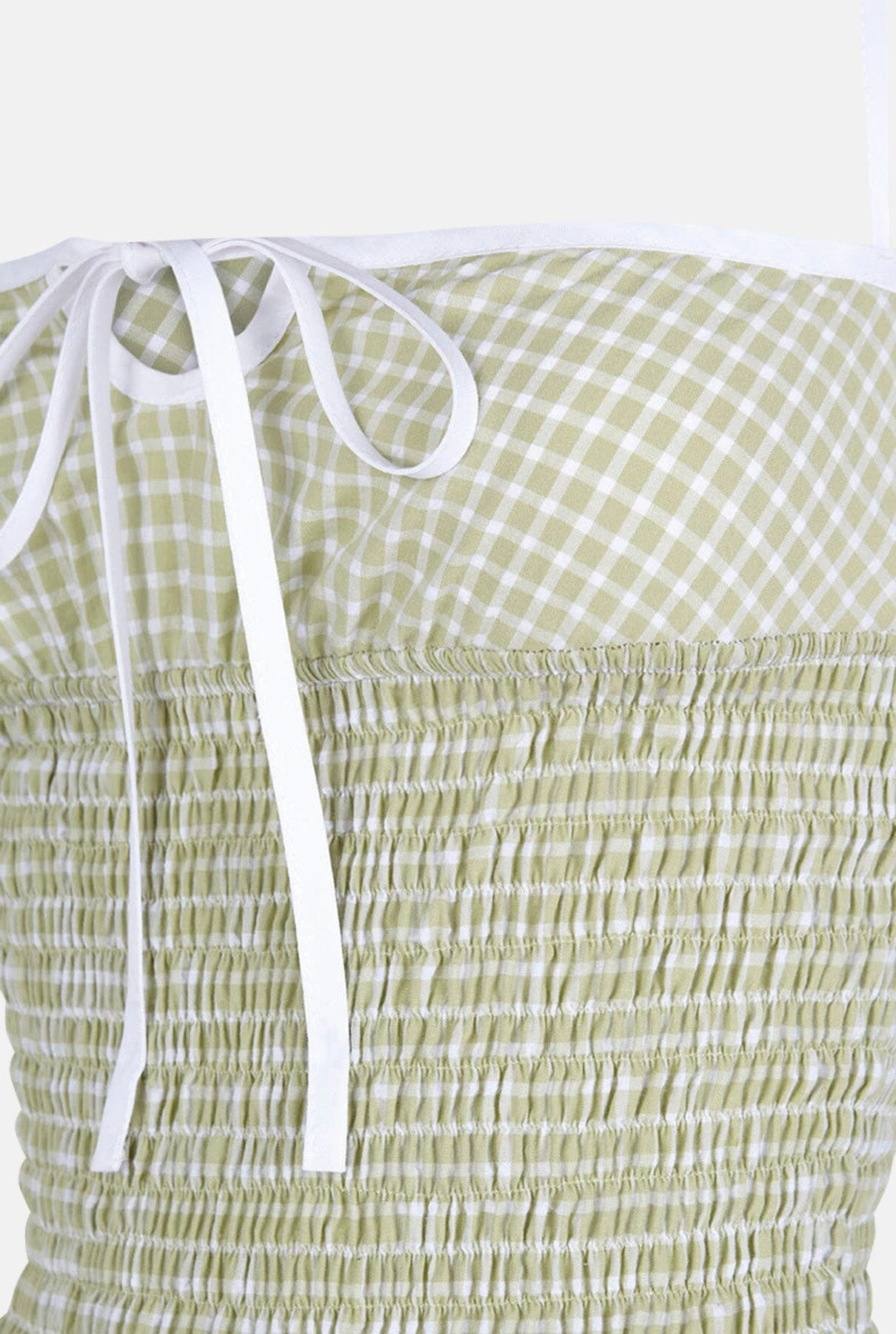 This strapless, green vichy print dress is elastic, making it perfect for all body types.