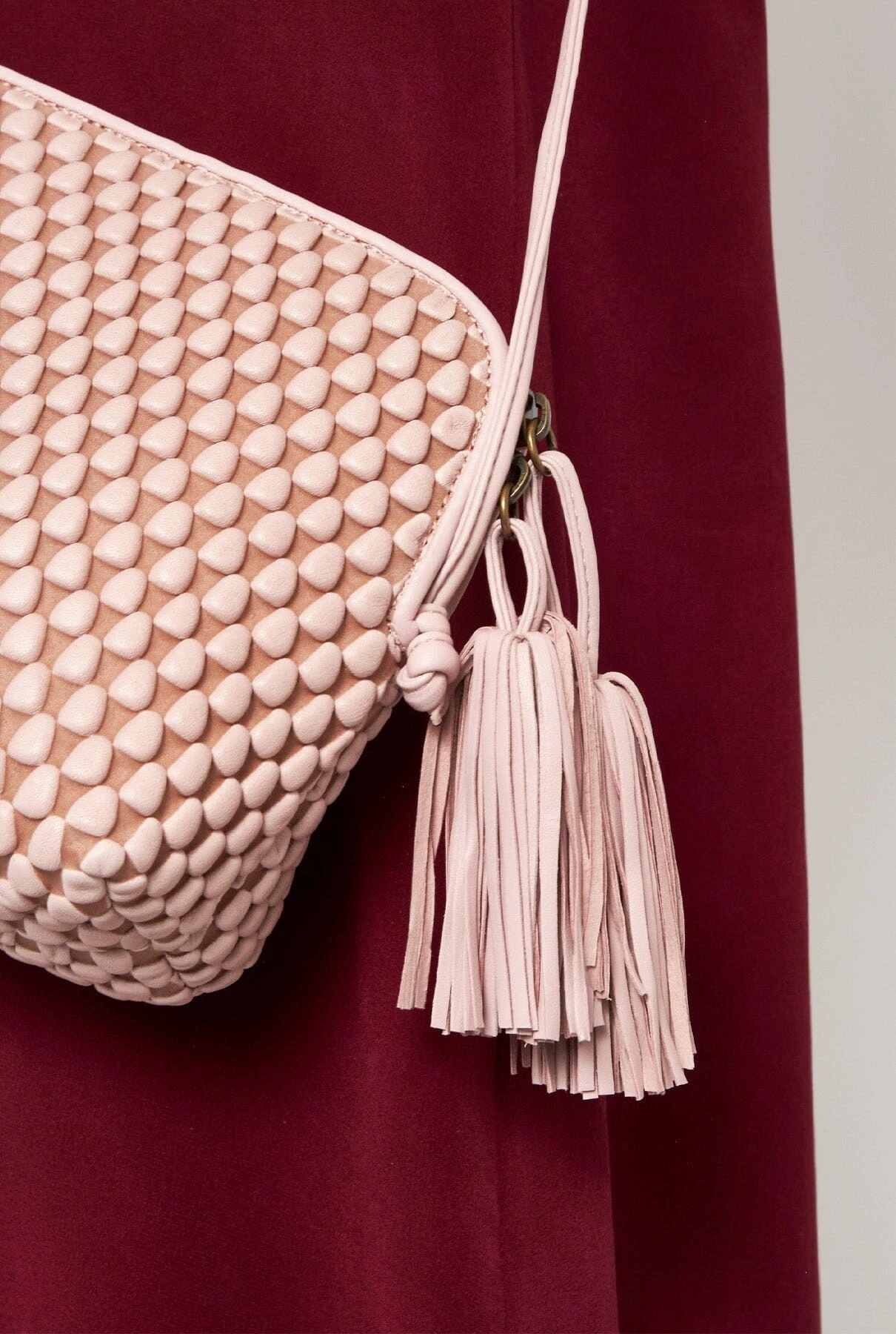 Everybody needs a “Gizmo” in their life. This roomy day to evening bag will be your new best friend. Wear it crossbody while racing around town, it will easily hold all of your essentials. The double tassle adds the perfect finishing touch. Handcrafted by skilled artisans using the finest, velvety soft nappa bubble lambskin. Designed by Tissa Fontaneda.