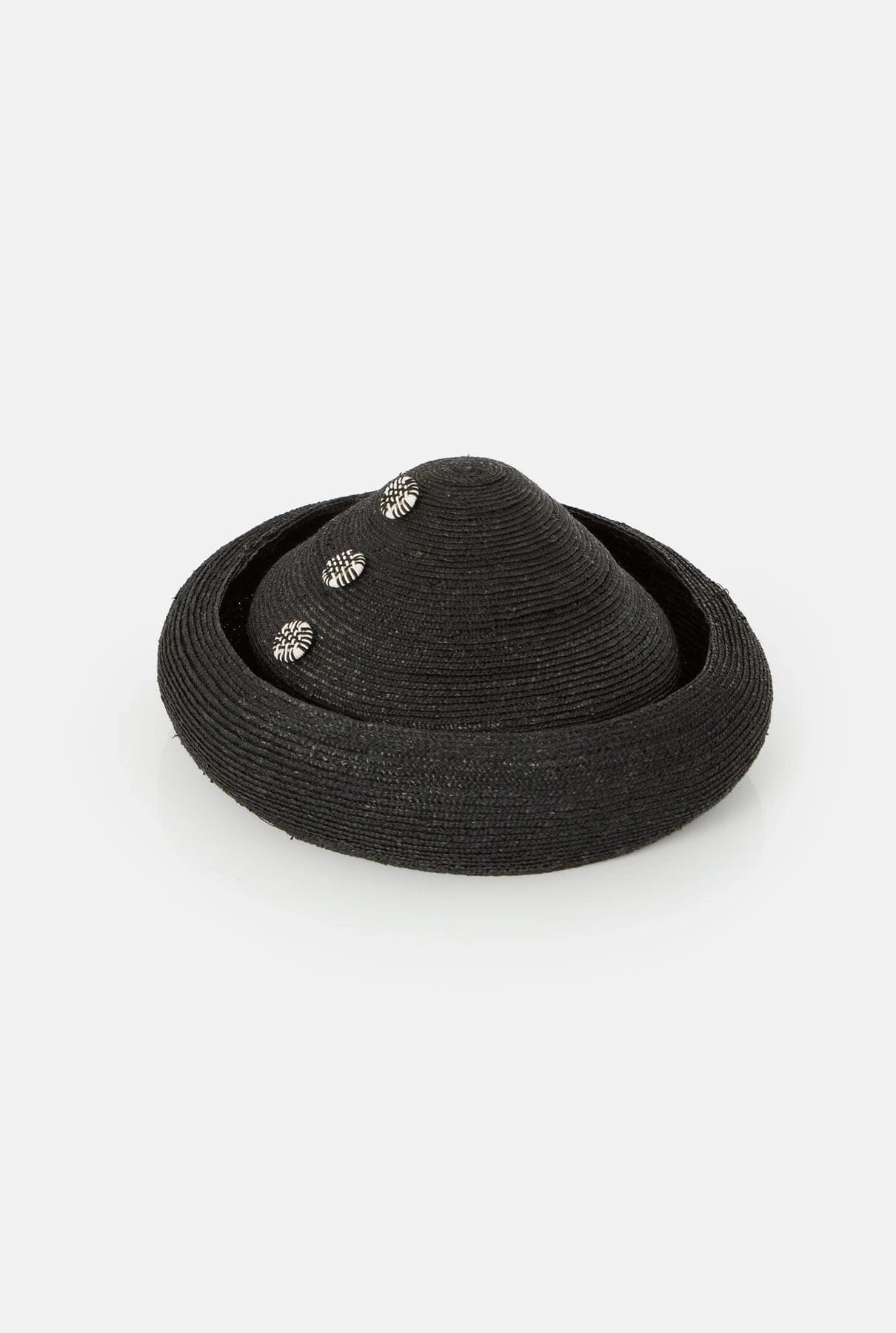 Headdress made of 4-5 mm wheat straw sewn and shaped in our workshop in Seville. Decorated with summarys. Designed by Nana Golmar