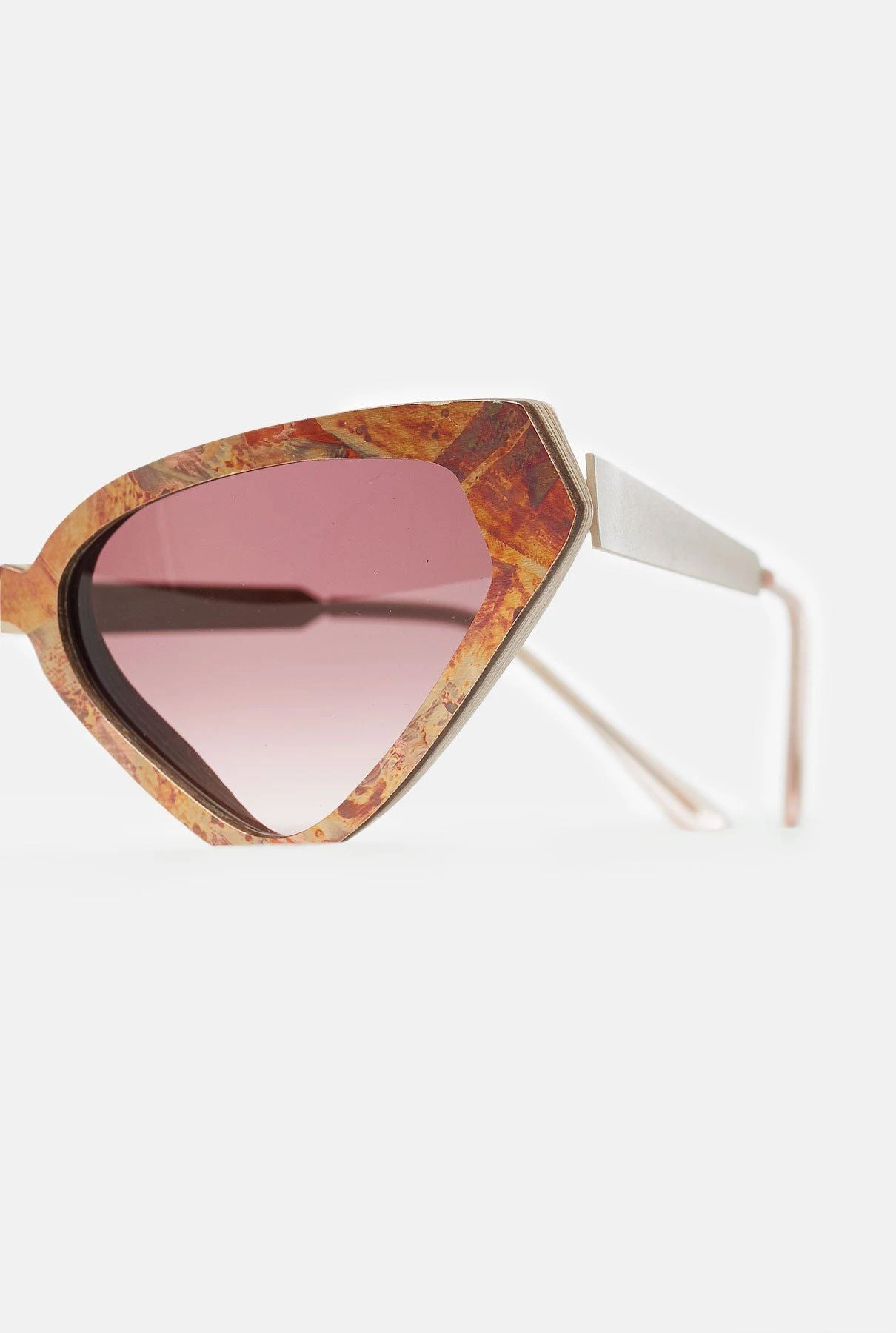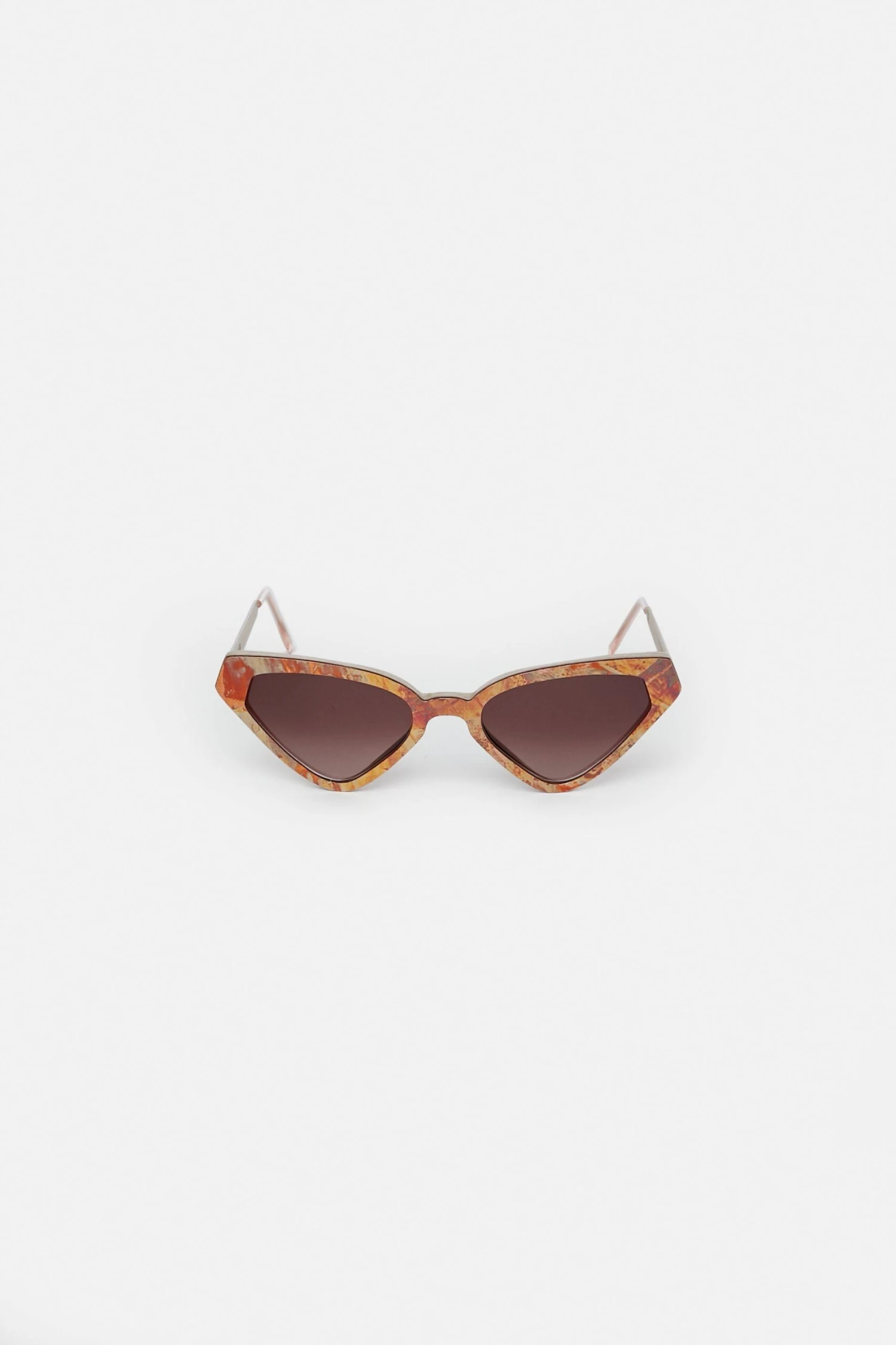Inspired by deconstructivist architecture, this triangular model is a futuristic version of the cat-eye. A form with a penetrating and mysterious halo. Its lines slightly straight and angulosas make this a perfect model for both men and women. Ultra light and extremely comfortable. You can take them to the beach or the snow, and wash them daily with soap and water. The lenses are ZEISS, the best on the market, which guarantee a perfect nitided and 100% UV protection. And if you want, you can change them by prescription lenses without problem. Designed by Nina Mur