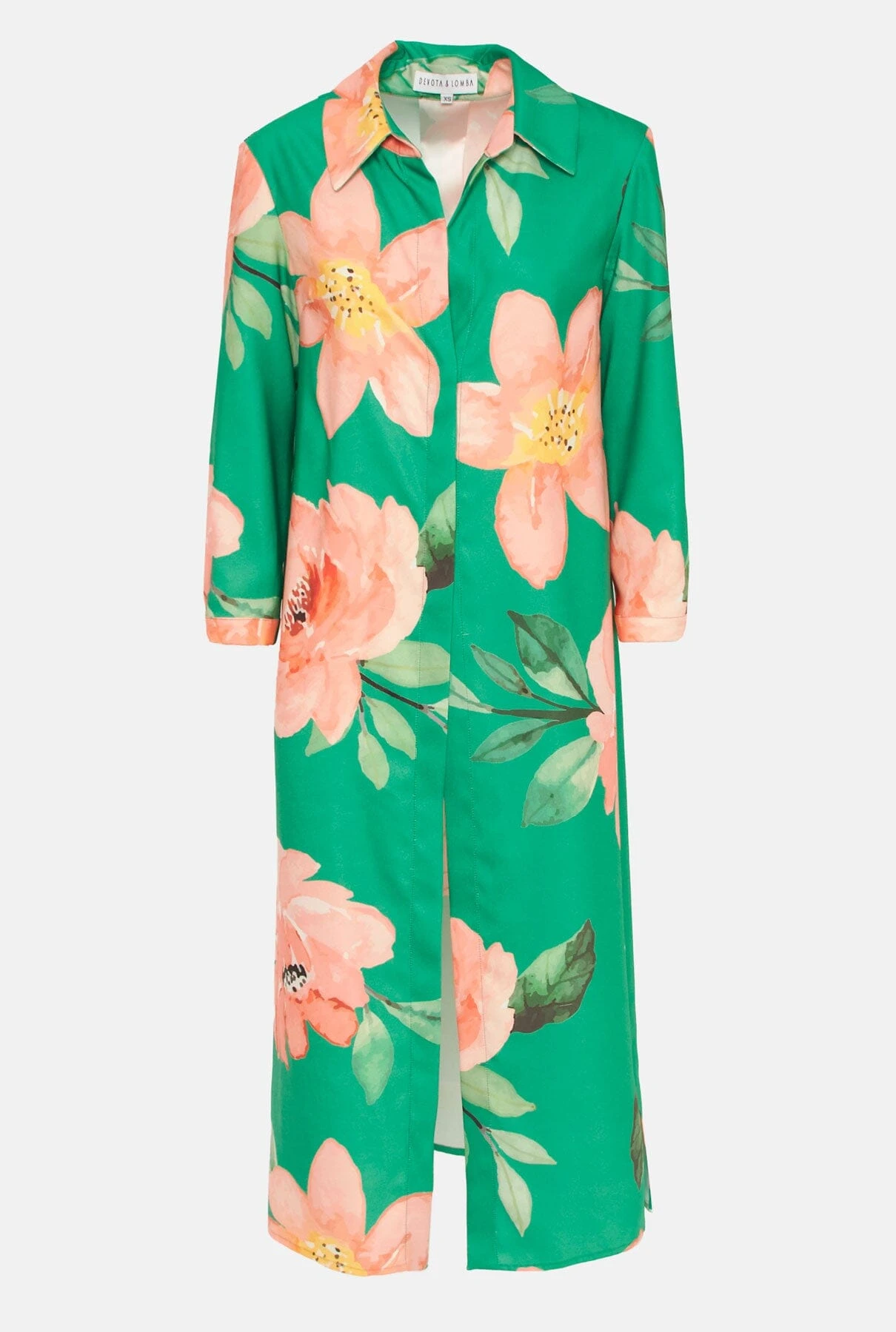 Shirt Collared frock coat with large slits on the sides. Front fastening with 4 summarys covered in the same fabric. French sleeves with cuffs.