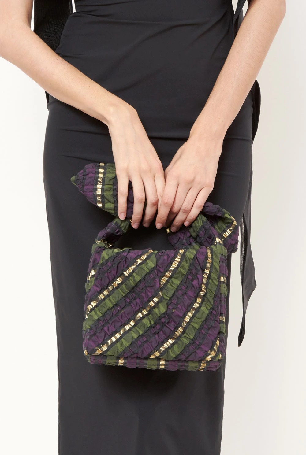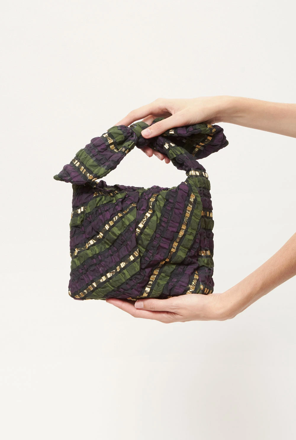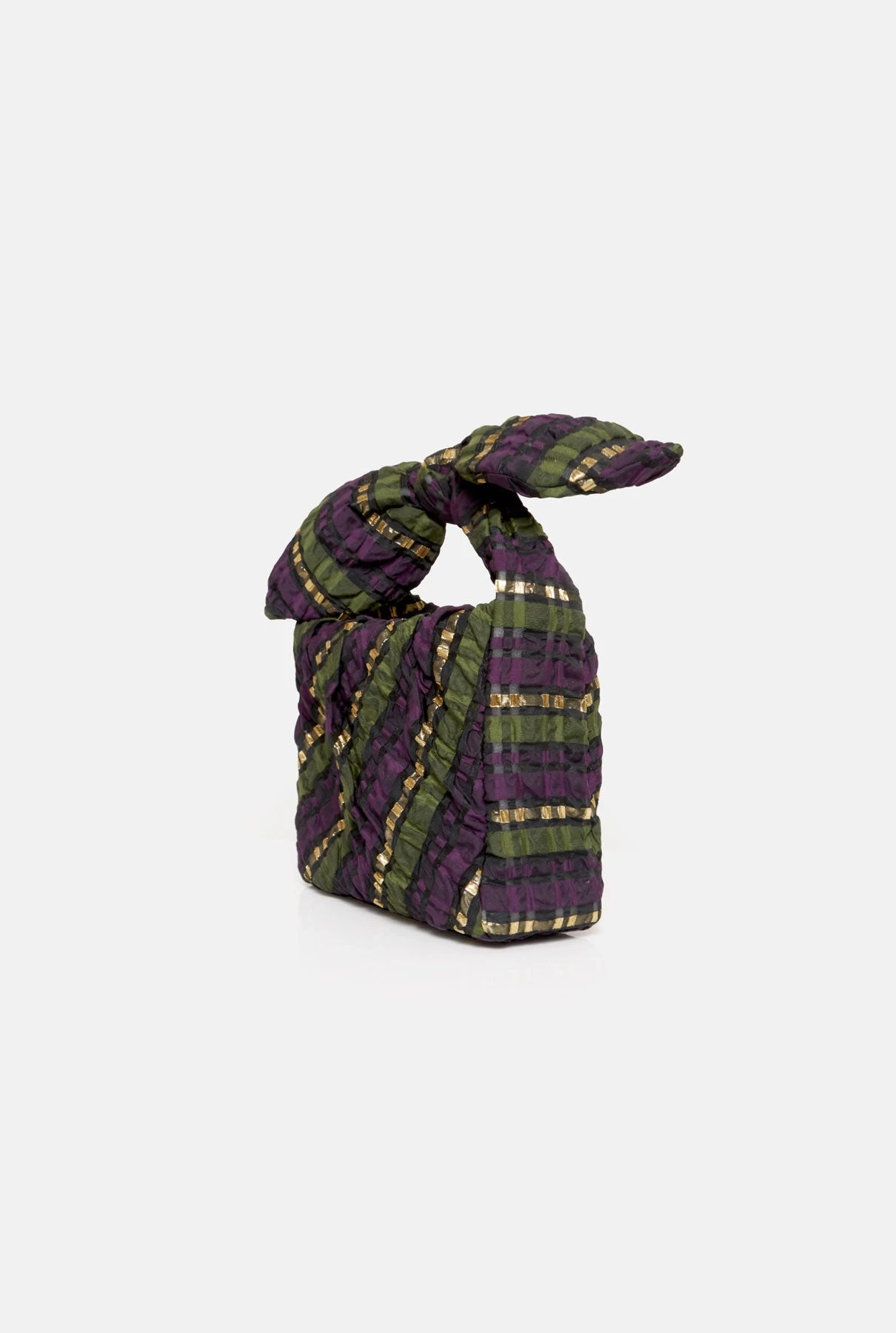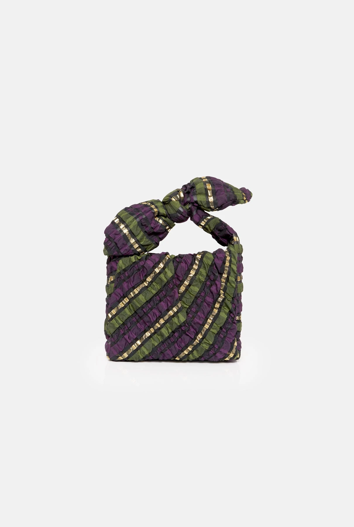 This bag is Made in Spain, crafted from an iconic paisley fabric. It is a soft pochette with knoted handle and magnetic top-summary closure. This product is handcrafted by artisans and proudly produced in the North of Spain. Designed by Laia Alen