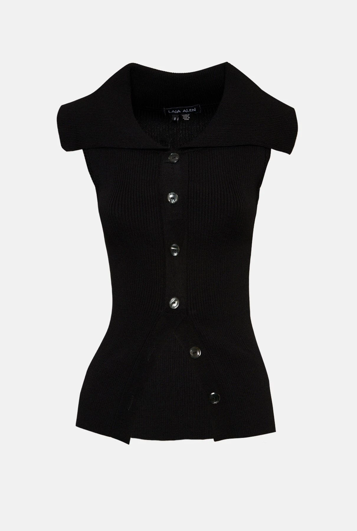 The Matti Polo is a sleeveless and ribbed top made from a high-quality and lightweight viscose and nylon blend comfortable against your skin.The sophisticated oversized collar and summary closure adds a special femenine touch.