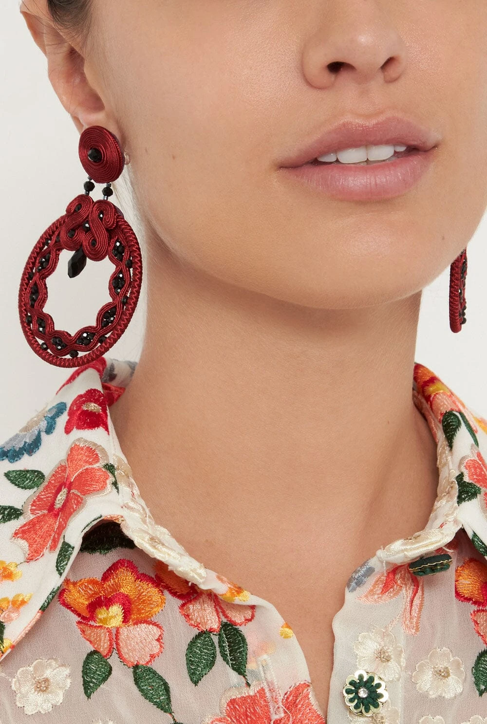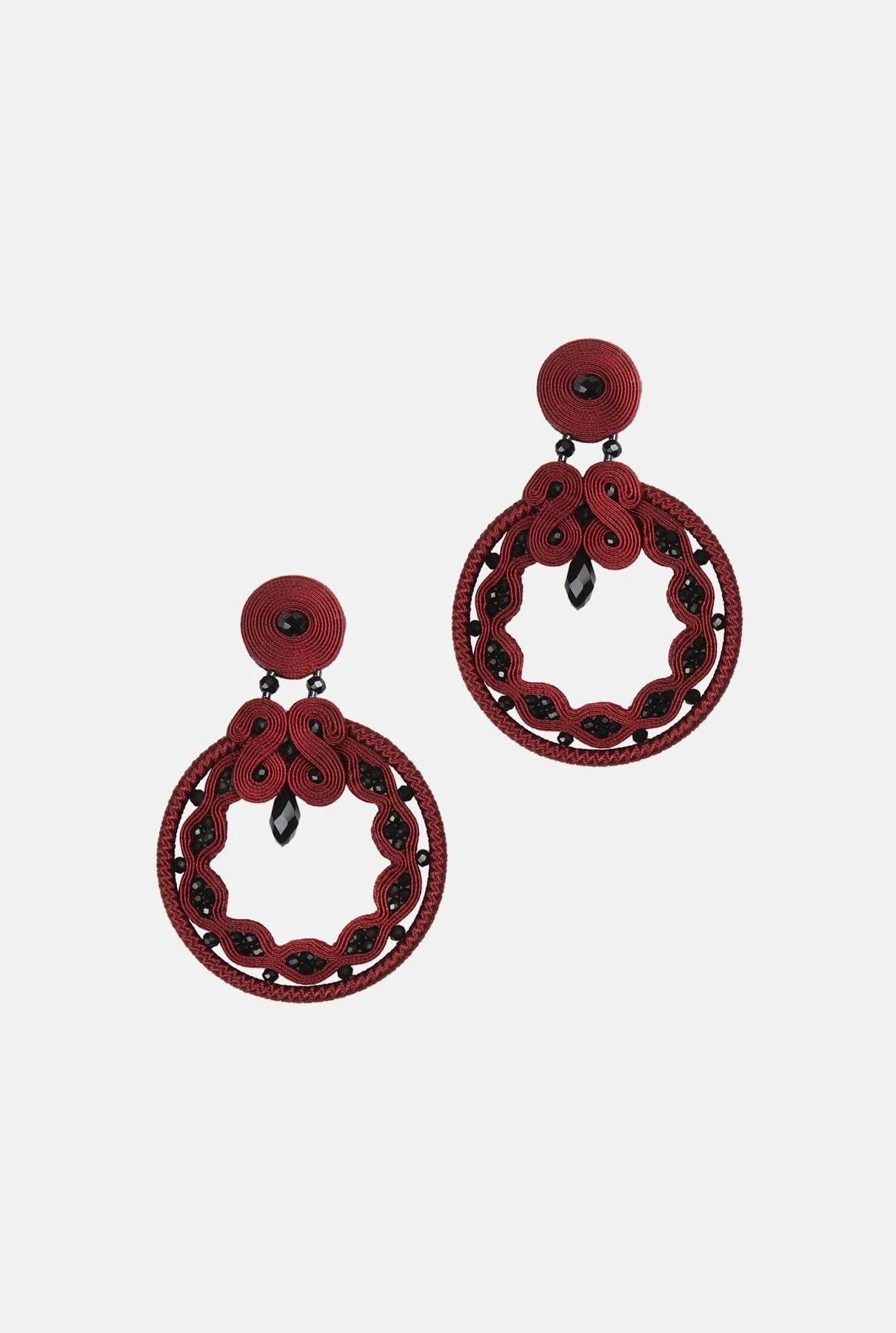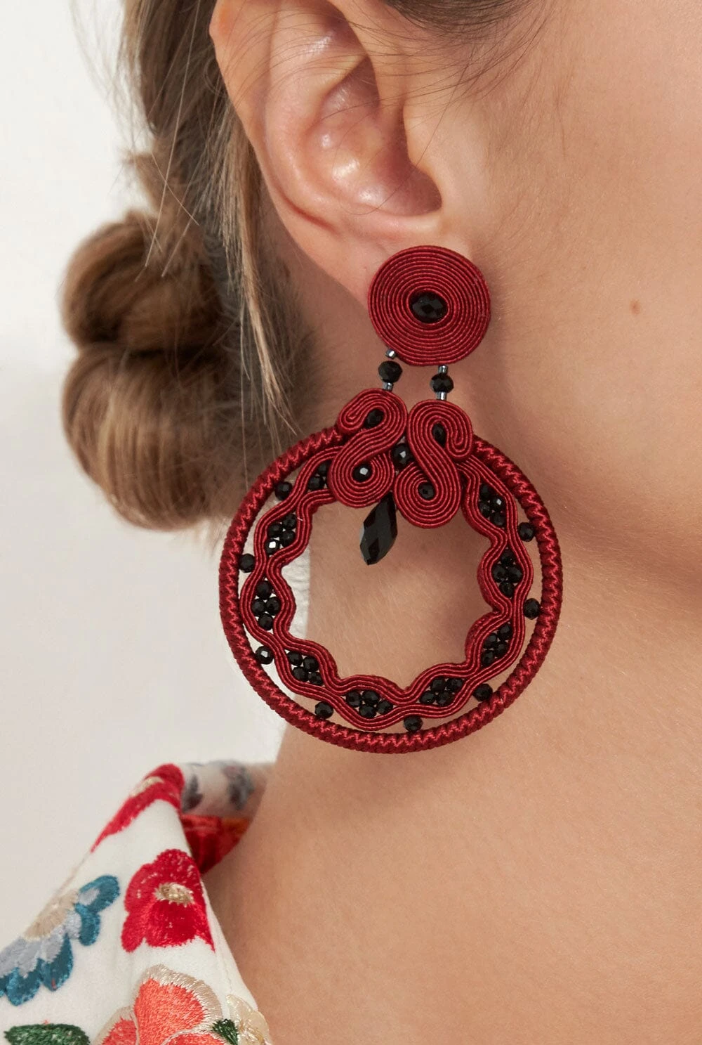Soutache hand sewn earrings made with silk rayon and crystal beads. Artisan Jewelry made in spain.