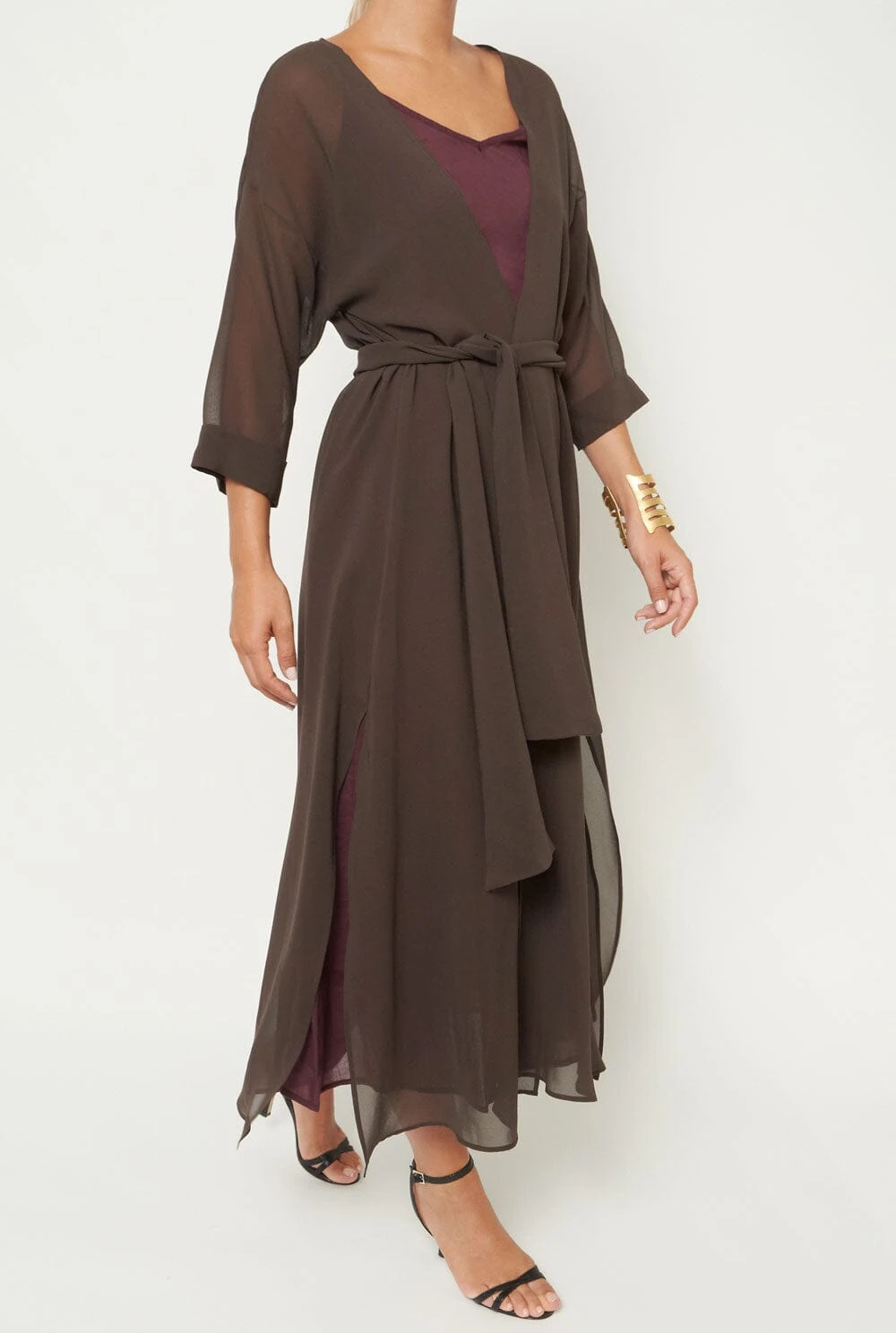 Versatile 100% silk chiffon overdress coat with matching belt. Designed by Atelier Aletehia.