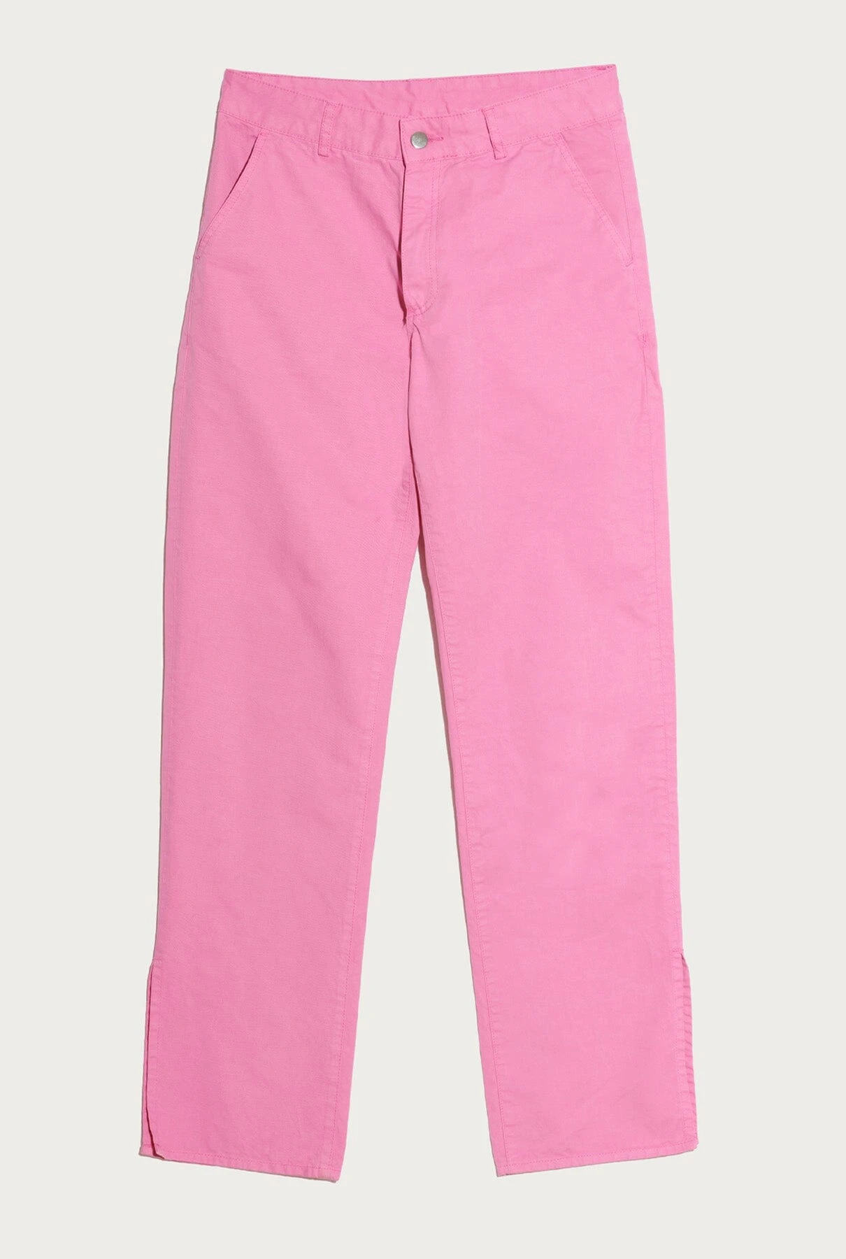 Yconic mid-rise straight-leg pink cotton pants. Small oppening on outer bottom part of the pants. Ynesuelves Rose logo embroidered on right back pocket. Zip fly closure.