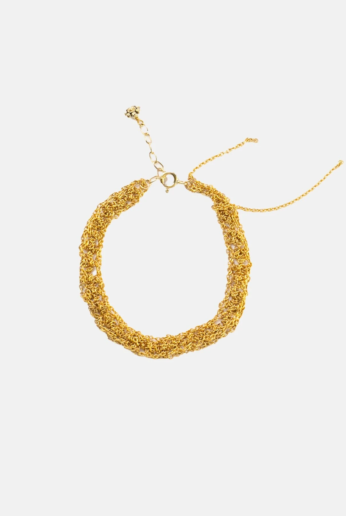 Crocheted fabric applied to jewelry in editions of very few units. Made using sustainable materials and processes as much as possible.