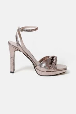 Slightly squared toe, 2 cm strap at the front and interlaced bracelet on the sides with golden buckle for a better fastening. It has a fine 11 cm heel (including a 1.5 cm high cushioned platform).
