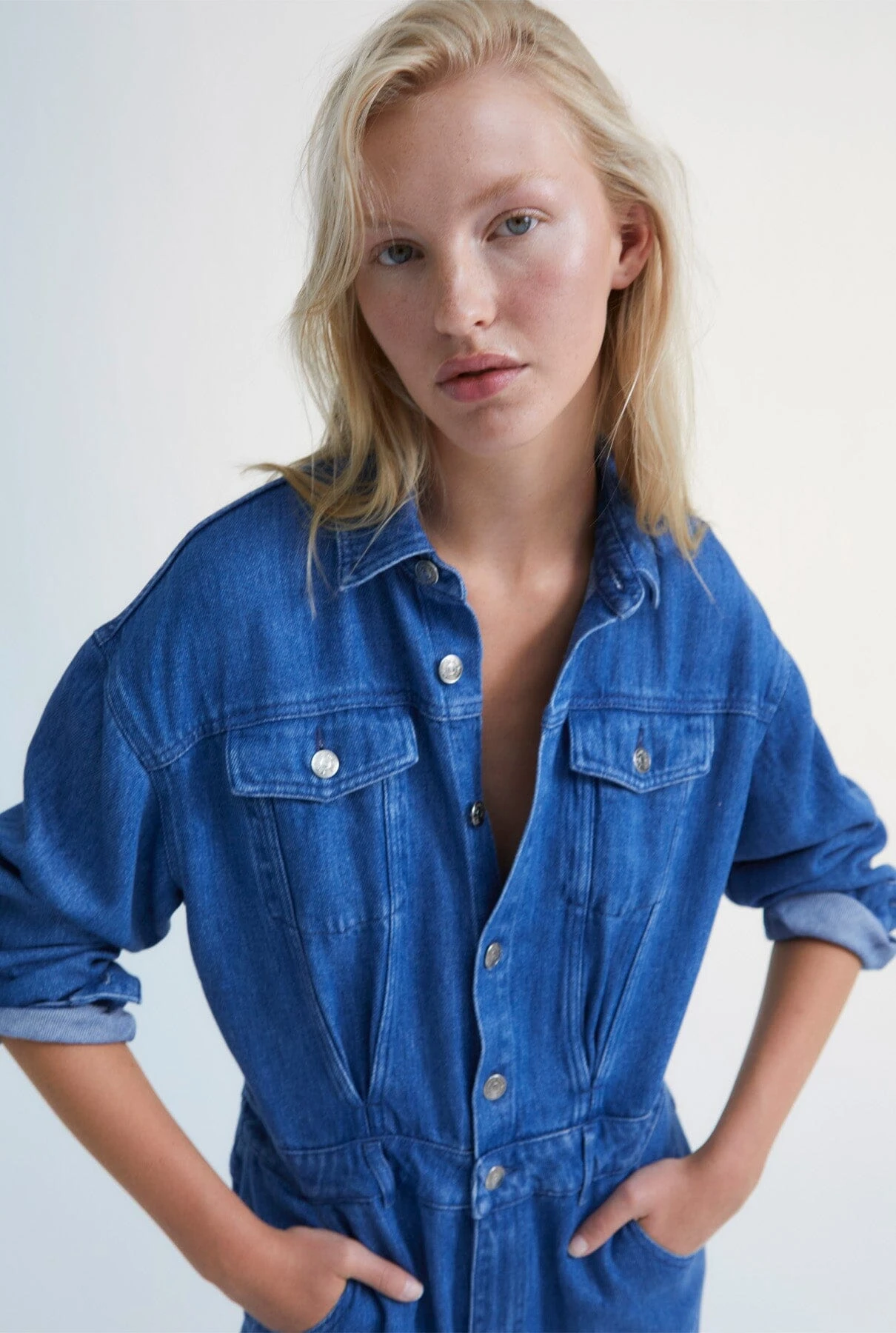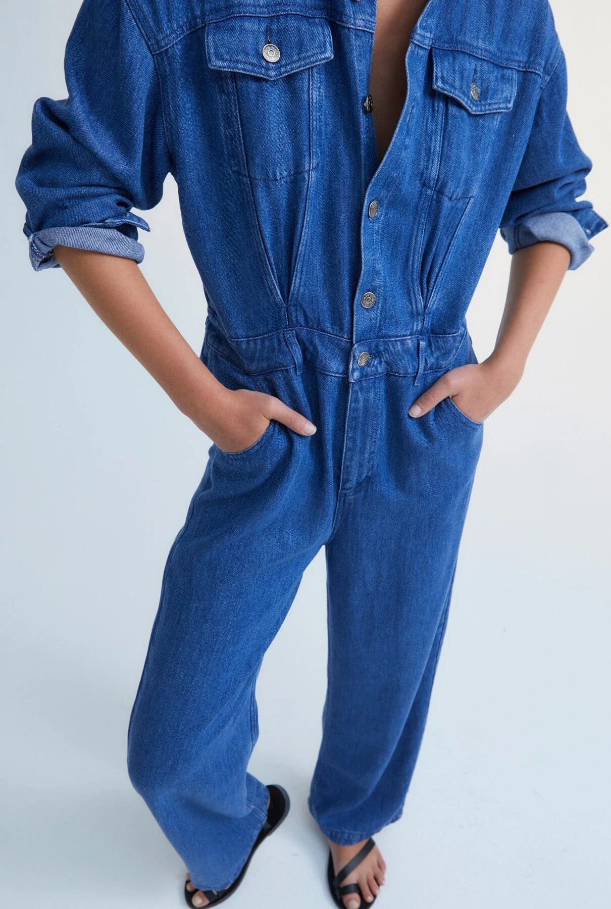 Step into comfort and style with the Woodland Jumpsuit. The elastic back ensures a perfect fit, while denim jacket-inspired details at the top add a trendy touch. This jumpsuit effortlessly combines fashion and ease, making it an ideal choice for a laid-back yet chic look.