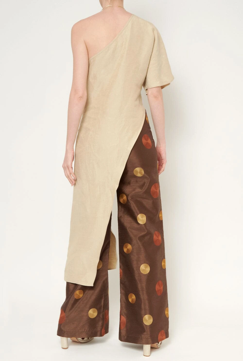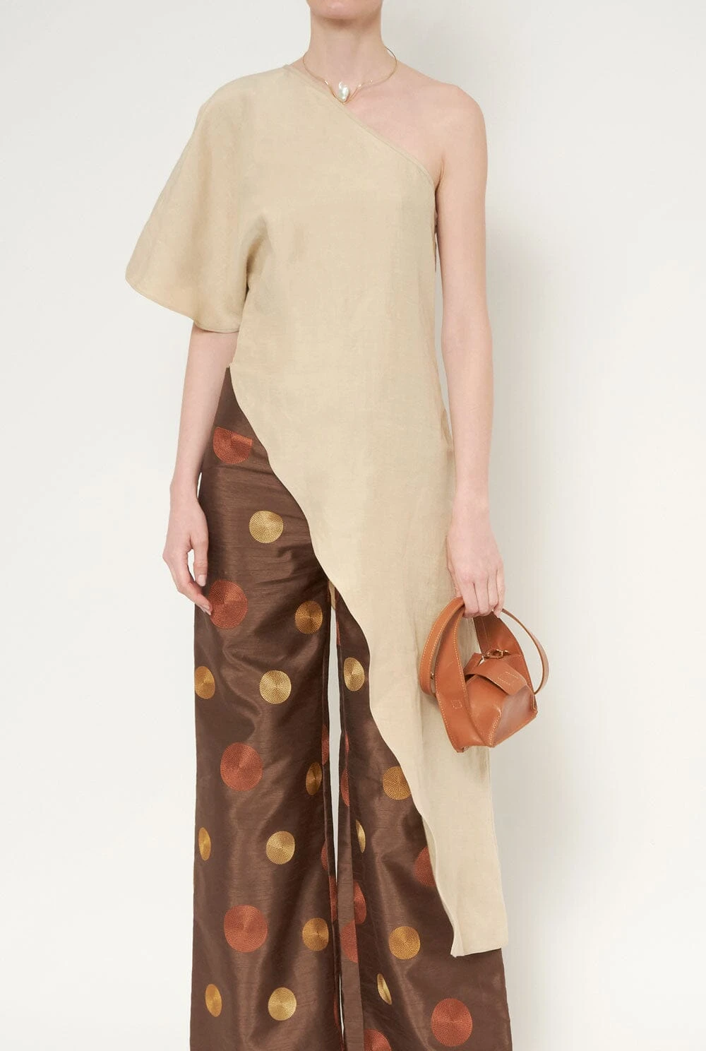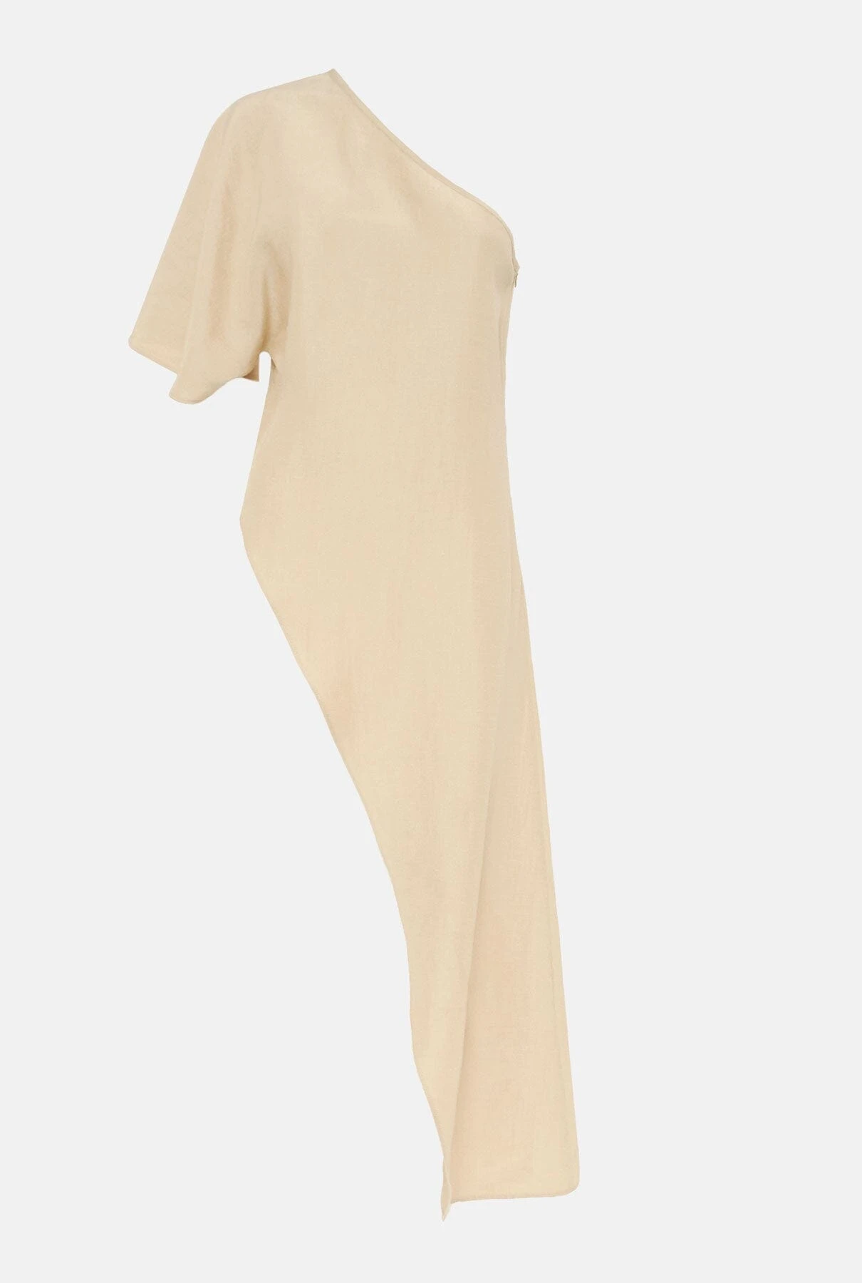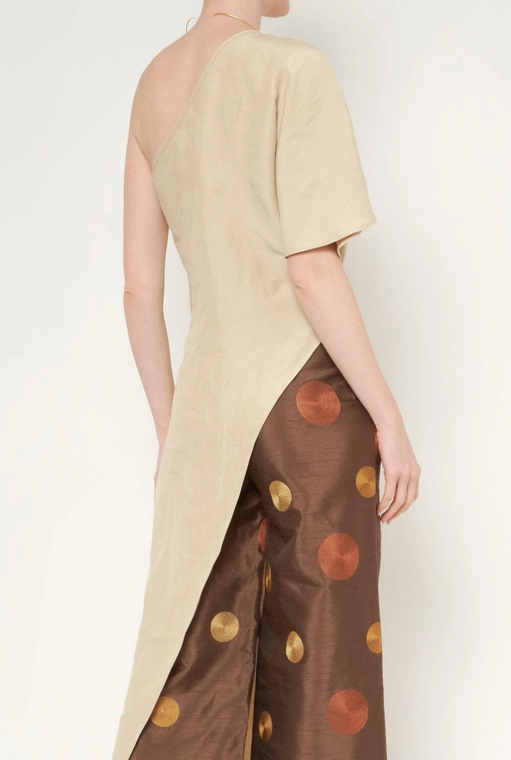 Asymmetric blouse in our comfortable and flowing linen/viscose quality! The shade is a sandy colour, very flattering in summer and goes well with any colour!