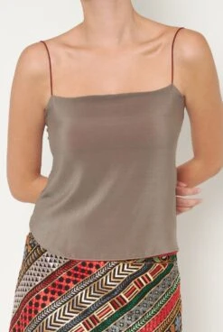 100% Silk crepe reversible top with thin elastic straps. Dyed with natural tints piece by piece in our studio. arments. Leave to dry in the shade. Iron inside out. If you get stains, remember, don’t rub! Simply soak the fabric and allow the dirt to dilute.