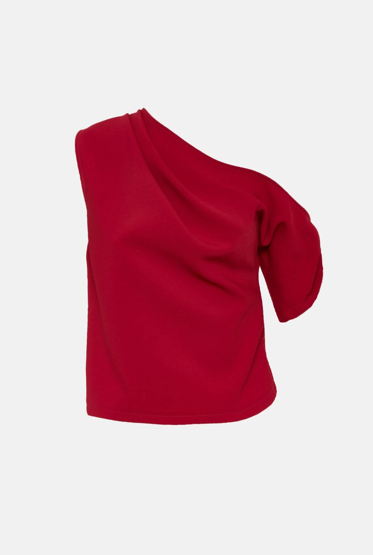 Top made by hand in our workshop in Lanzarote. Top with asymmetric neckline and short dropped sleeves. Bare shoulder detail and side draping.