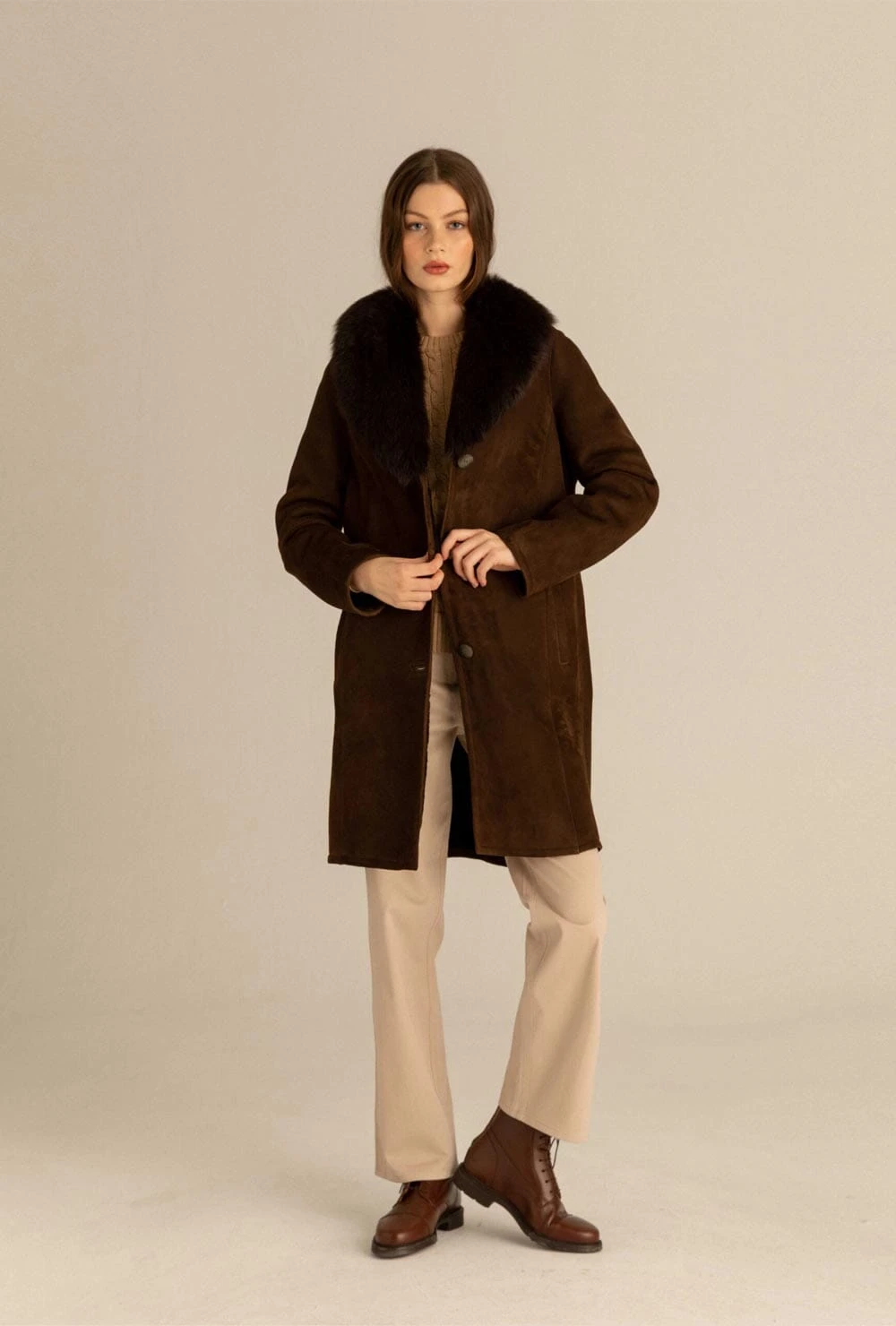 Brown lambskin pinch coat. Designed by Kolonaki.
