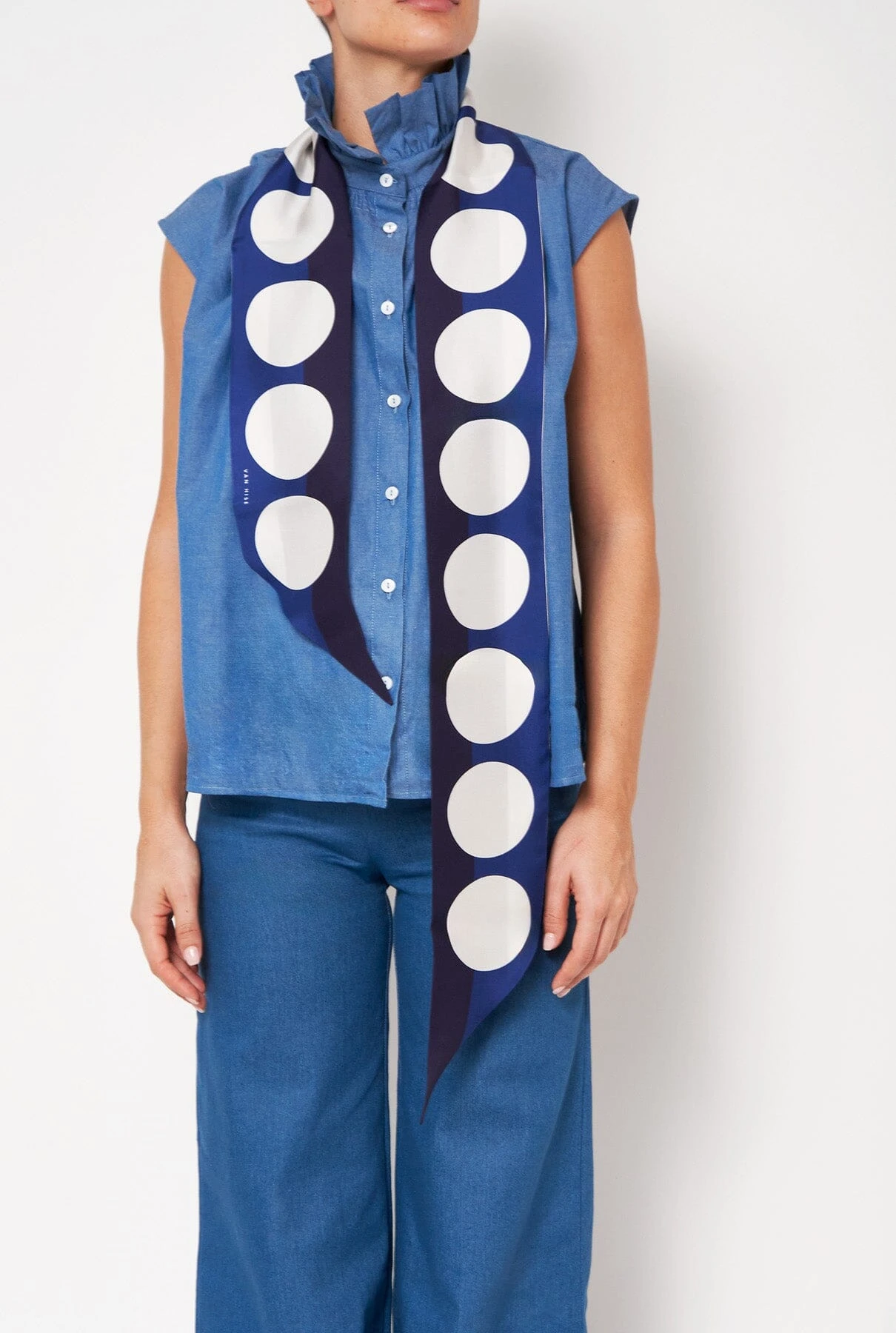 Limited Edition designed by Carrie Van Hise. Long double silk scarf printed with original color block design. The Veronica scarf can be worn around the neck, as a head scarf, or to belt a dress or jeans for a casual look. Made in Spain.