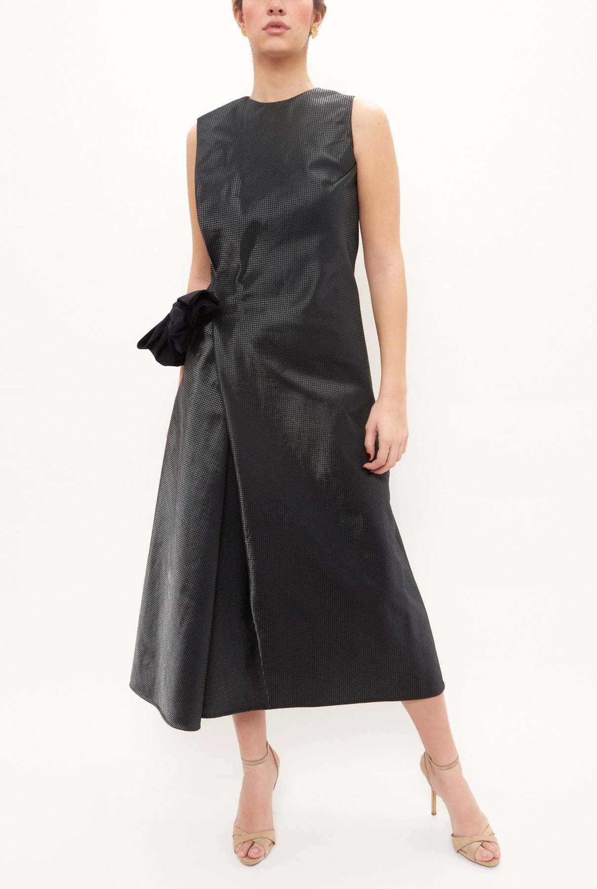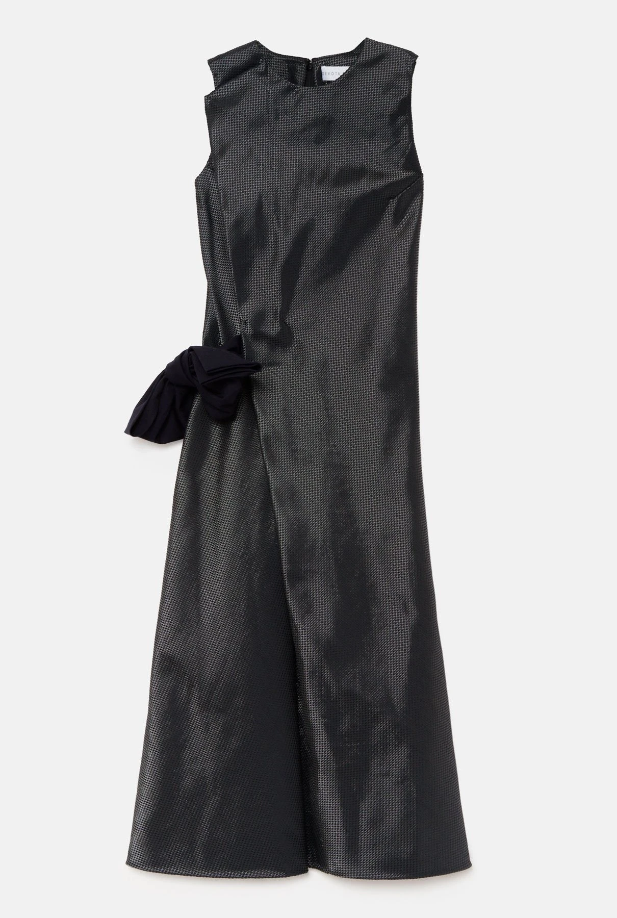 Semi-fitted dress with bow on hips. Designed by Devota & Lomba