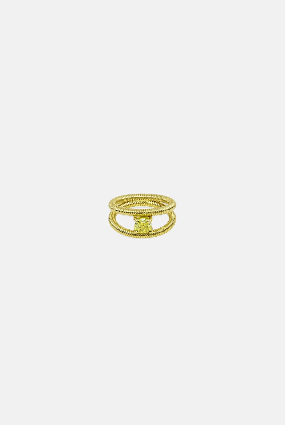Solitaire ring made in 18K yellow gold with central cushion cut diamond.
